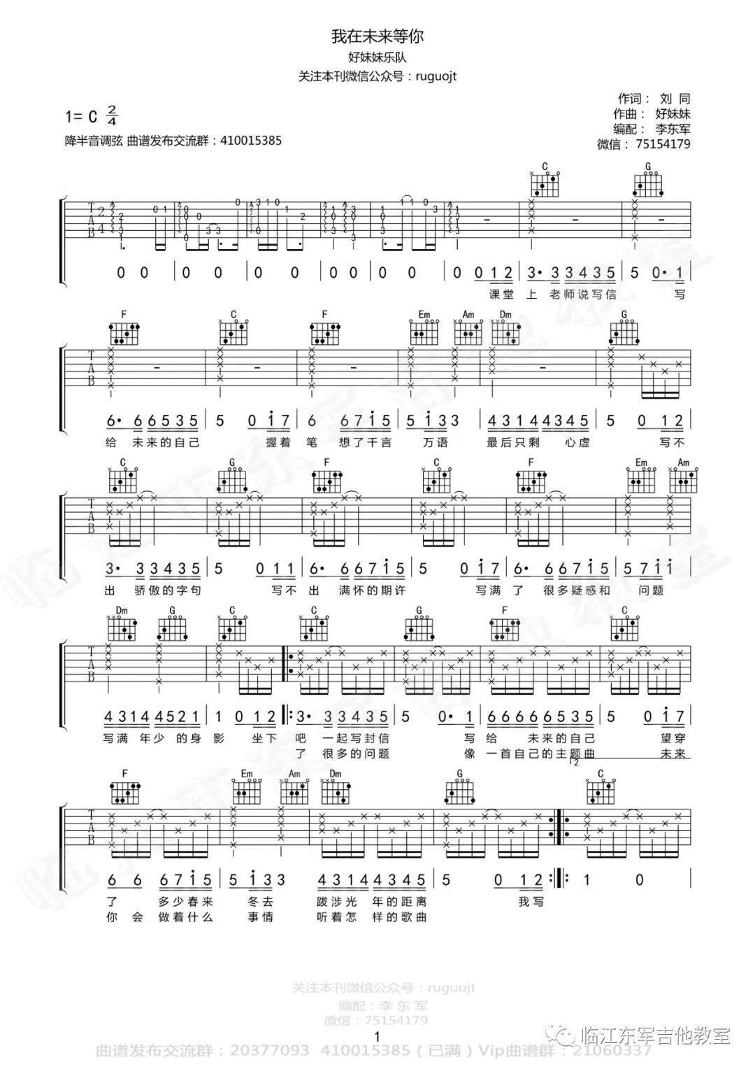 吉他好妹妹乐队《我在未来等你》吉他谱-C调弹唱谱六线谱
