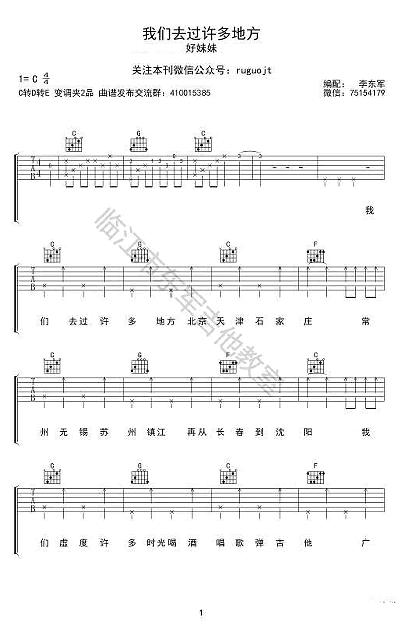 吉他好妹妹乐队《我们去过许多地方》吉他谱-C调弹唱谱六线谱