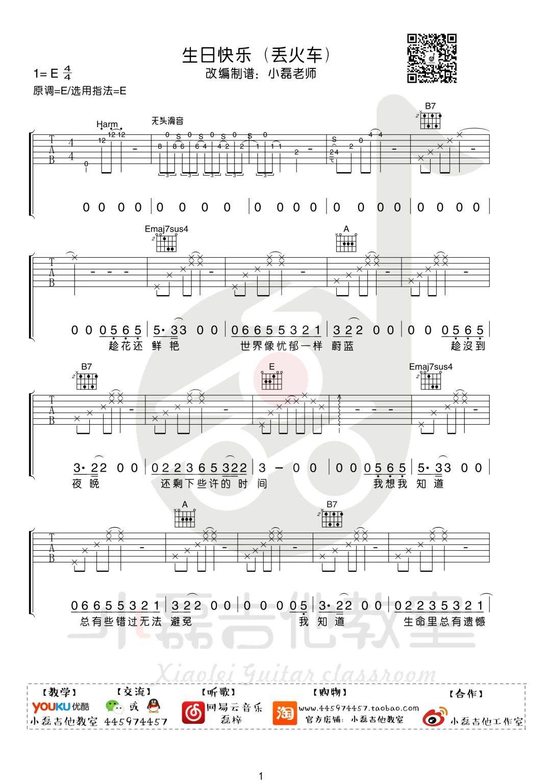 吉他丢火车乐队《生日快乐》吉他谱-E调原版弹唱谱六线谱