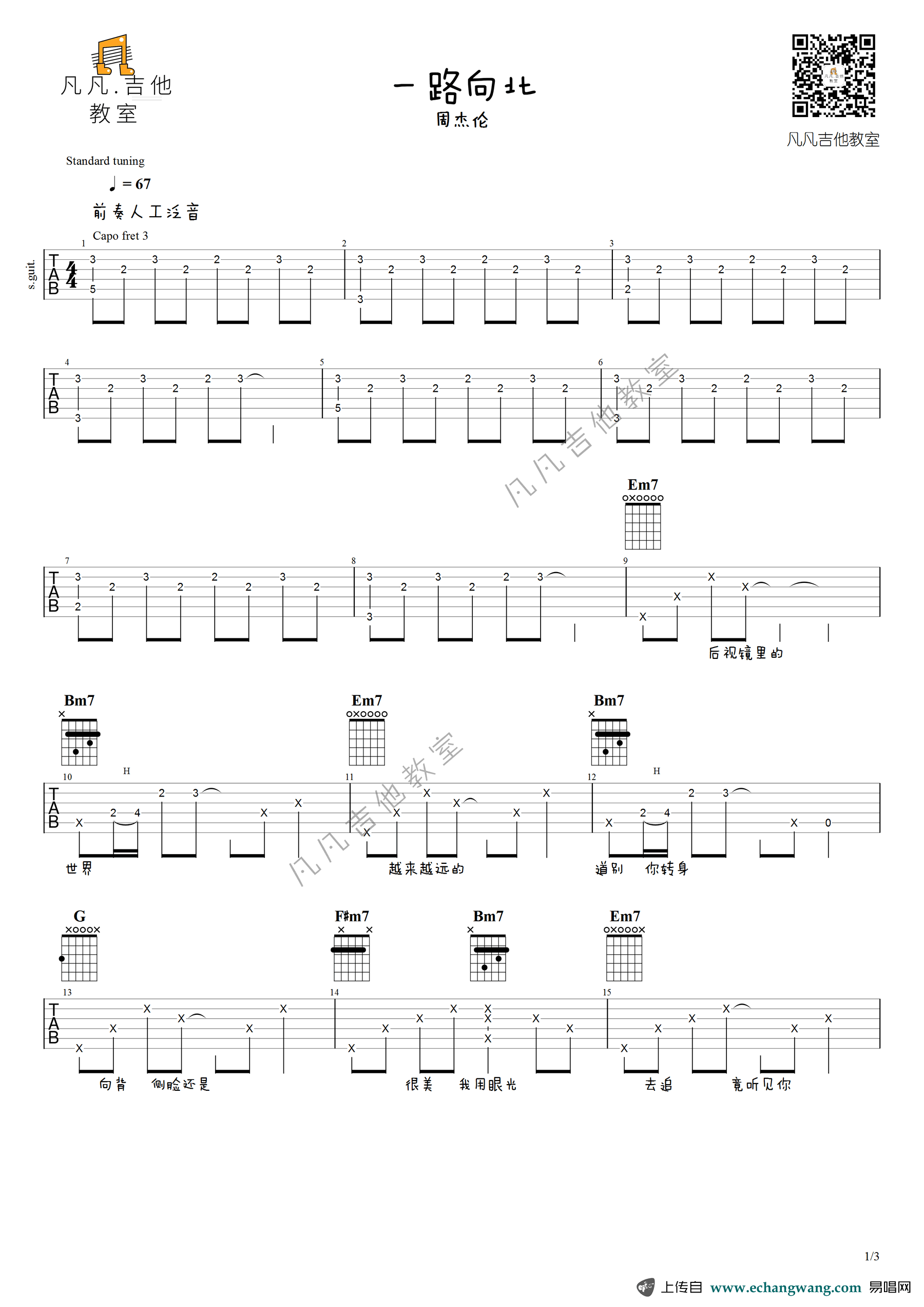 周杰伦《一路向北》吉他谱-D调弹唱谱六线谱...