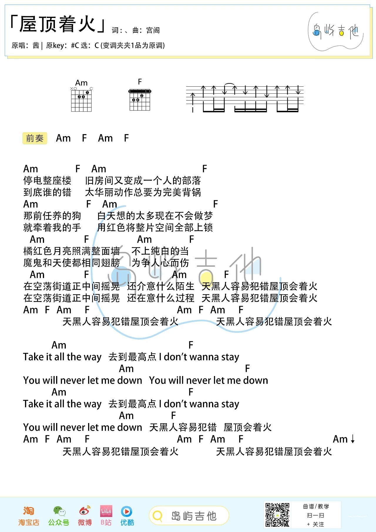 宋茜《屋顶着火》吉他谱-C调弹唱谱...