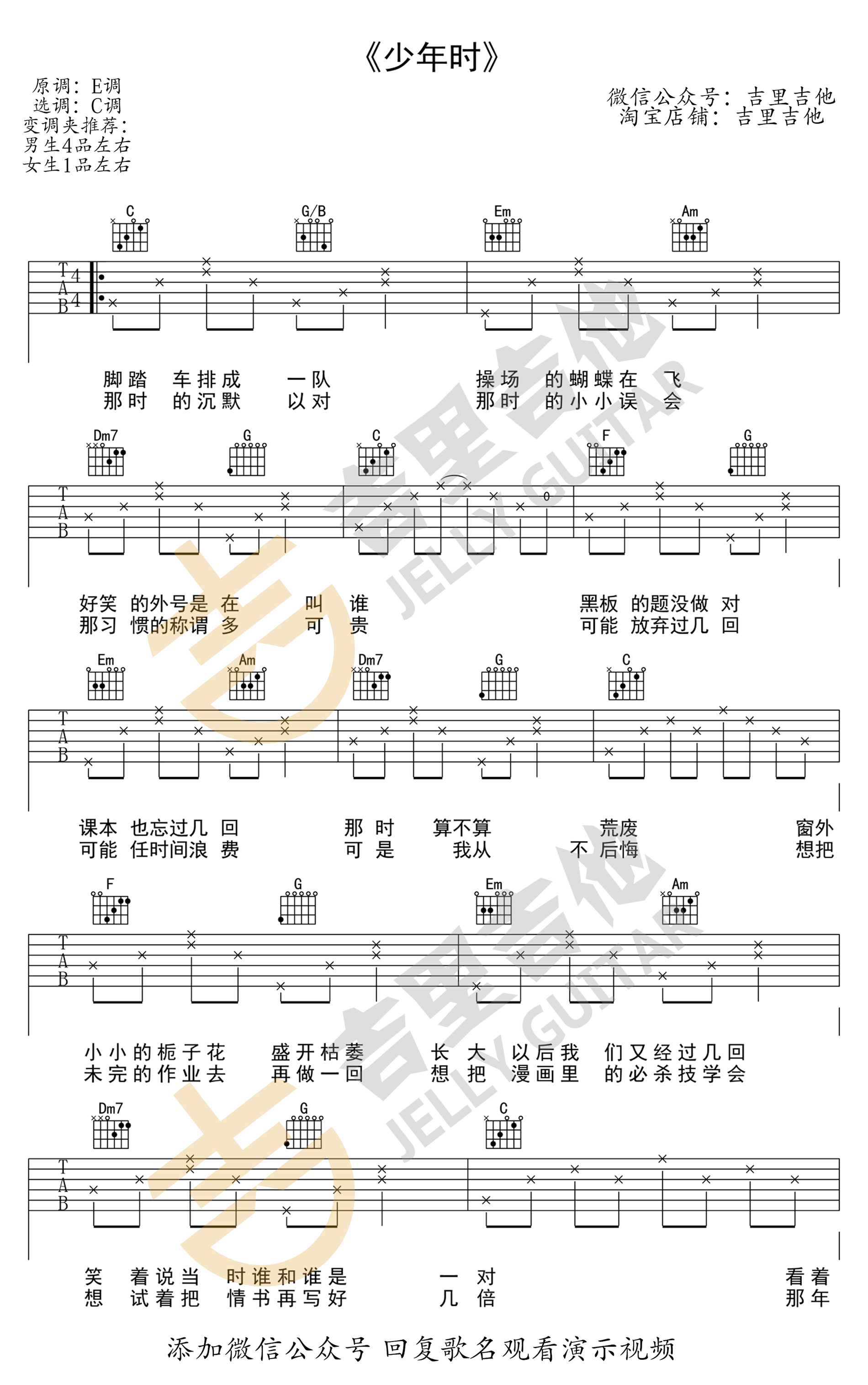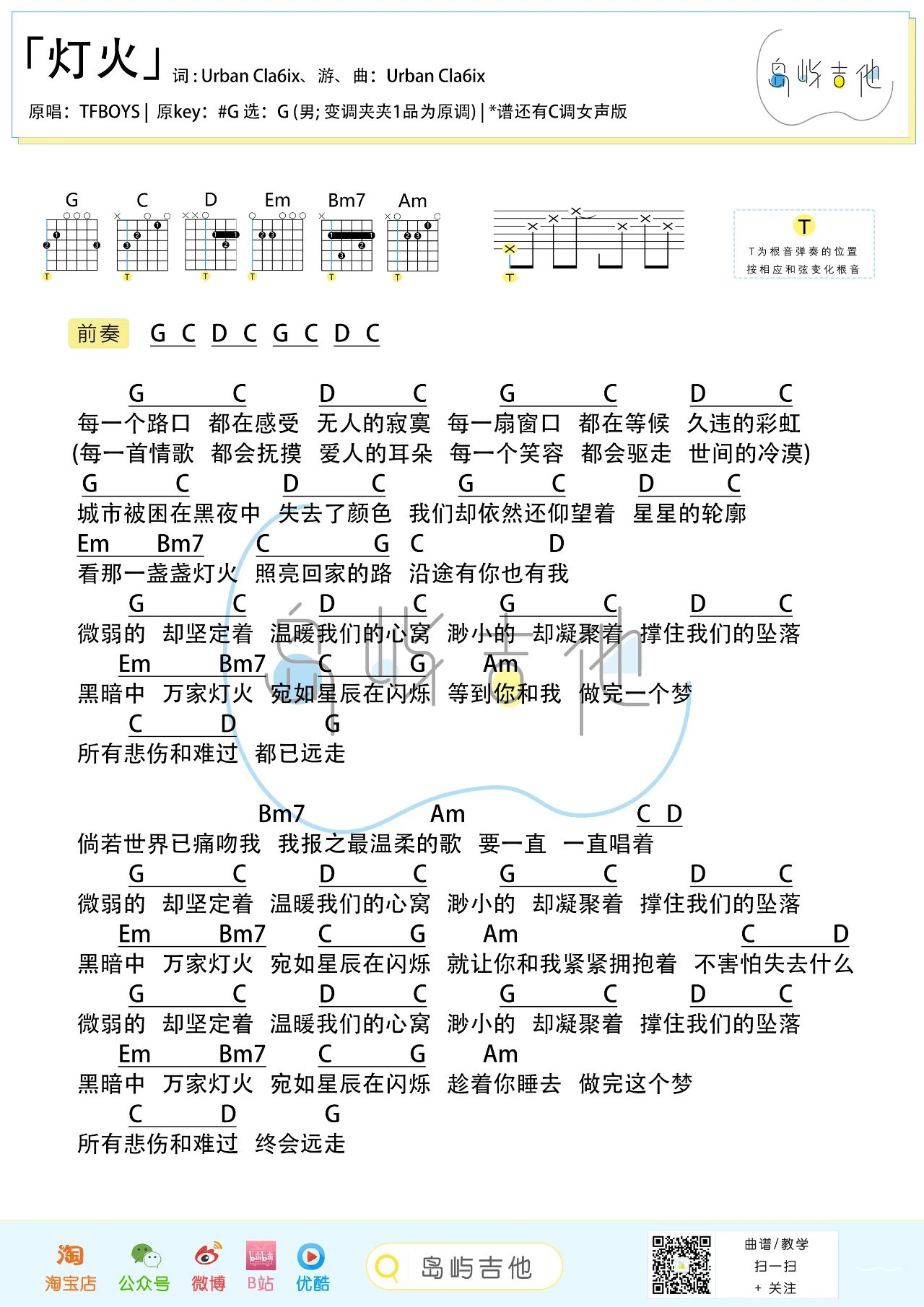 吉他TFBOYS《灯火》吉他谱-G调&C调版弹唱谱