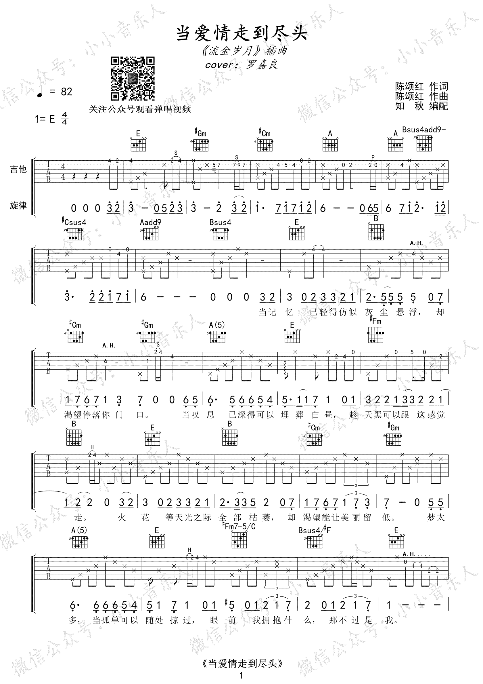 《当爱情走到尽头》吉他谱_罗嘉良_E调弹唱谱六线谱...