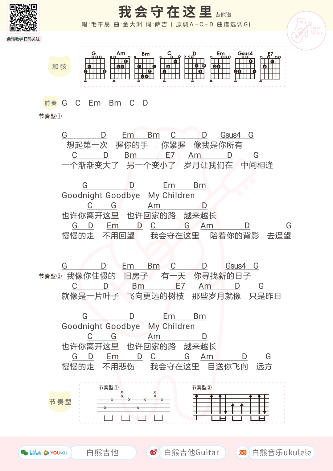 毛不易《我会守在这里》吉他谱-G调弹唱谱...