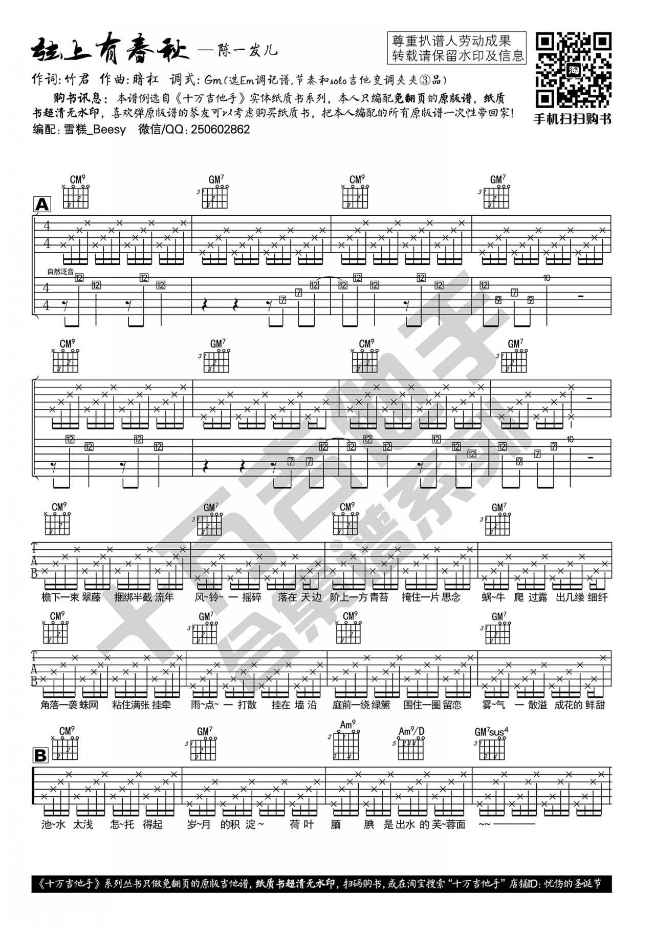 吉他《弦上有春秋》吉他谱_陈一发儿_原版弹唱谱六线谱