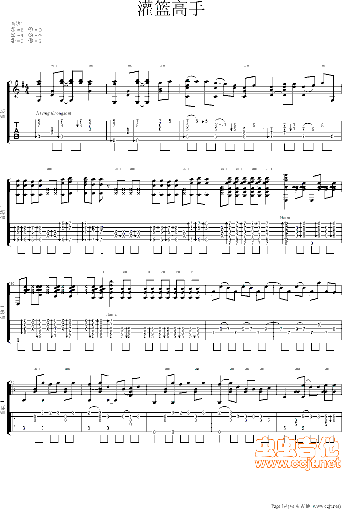 吉他卢家宏《灌篮高手》吉他谱-指弹弹唱谱六线谱