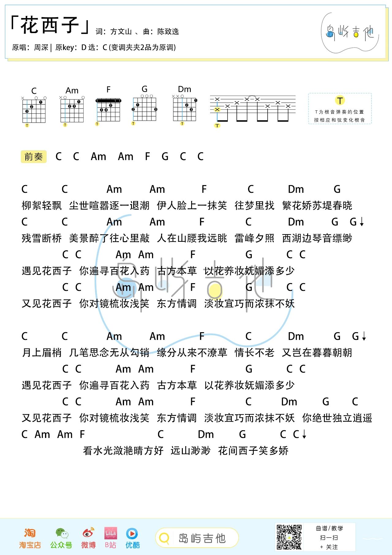 周深《花西子》吉他谱-C调弹唱谱...