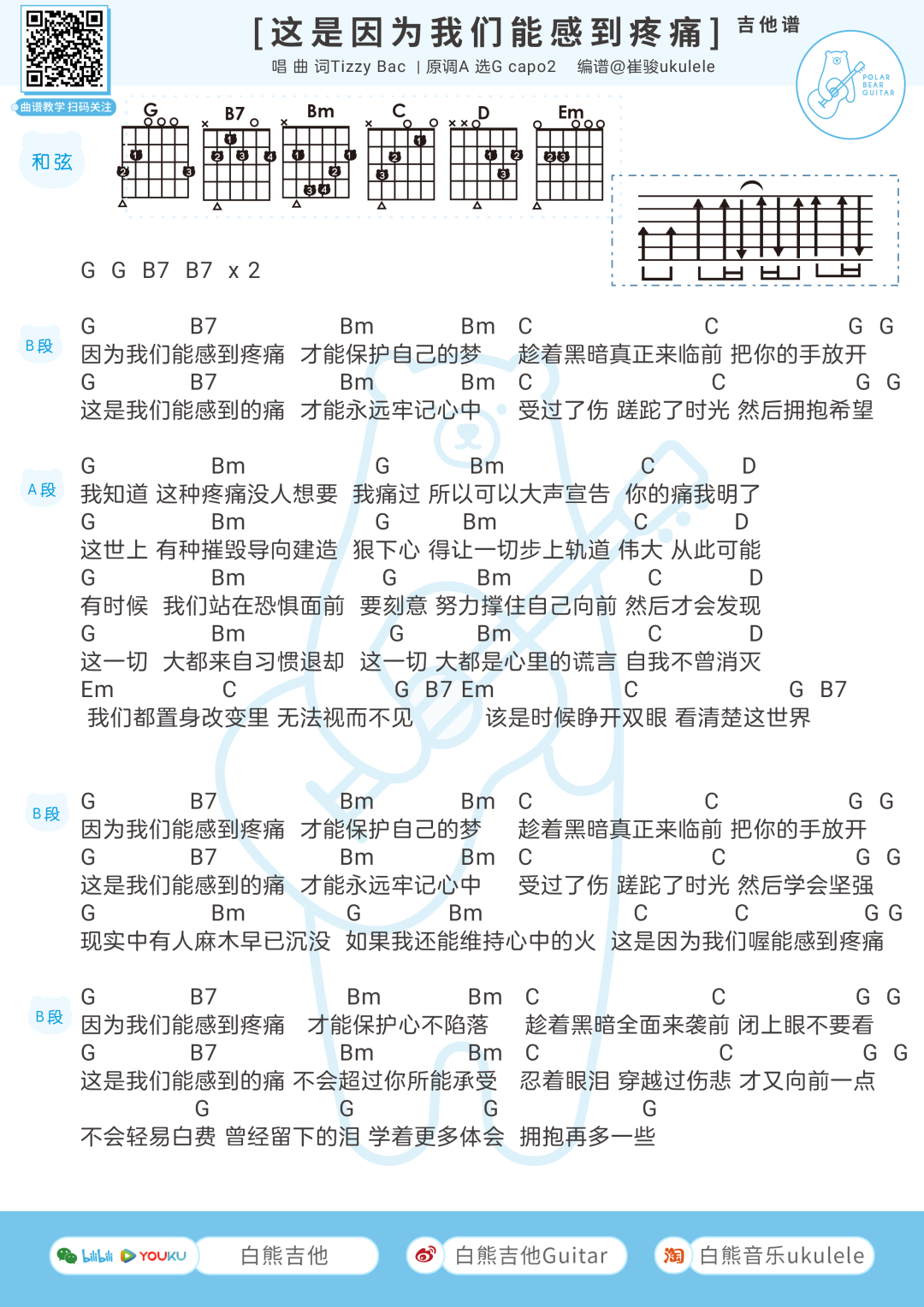 TizzyBac《这是因为我们能感到疼痛》吉他谱-G调弹唱谱...