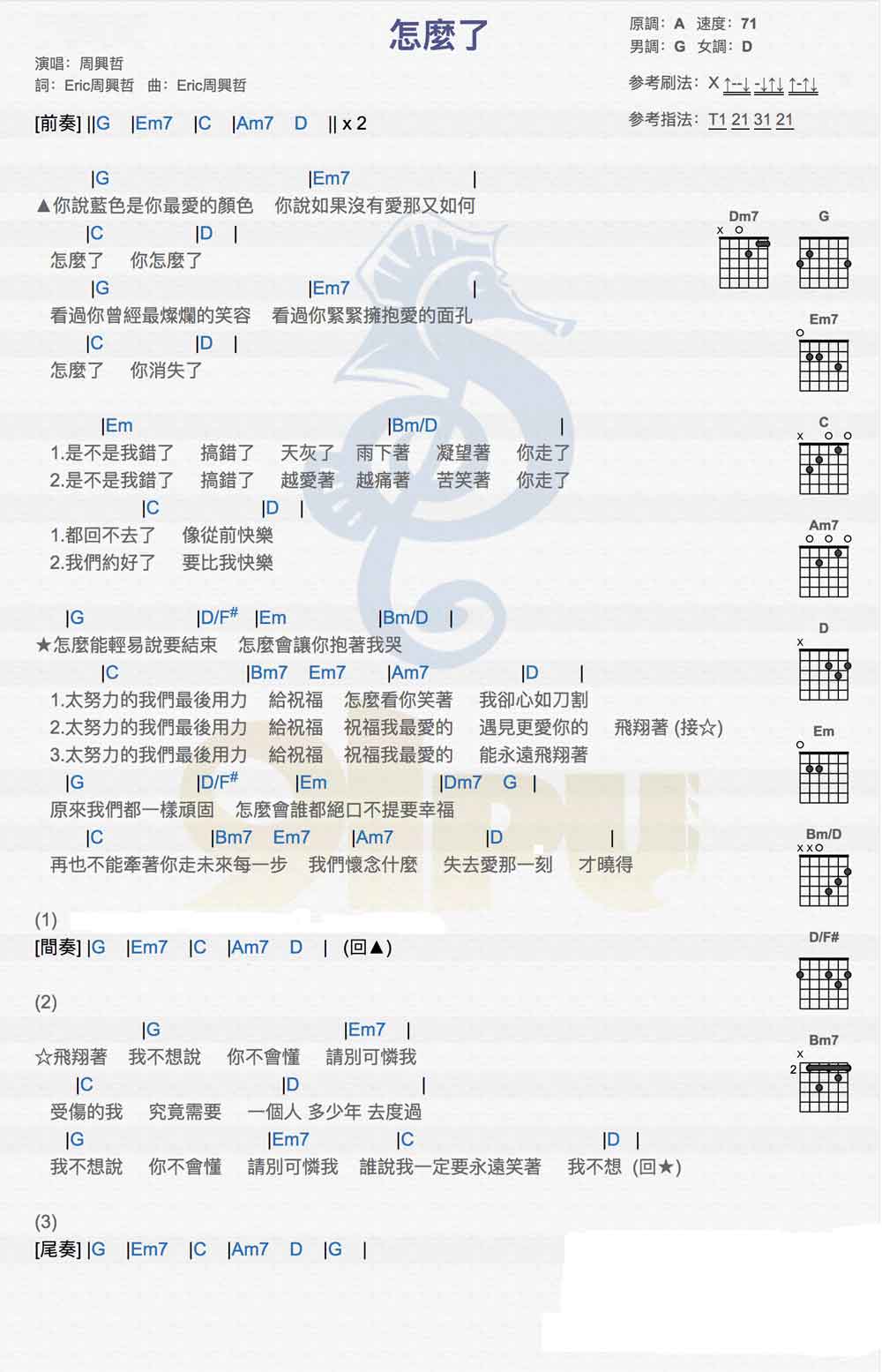 吉他周兴哲《怎么了吉他谱》吉他谱-G调弹唱谱