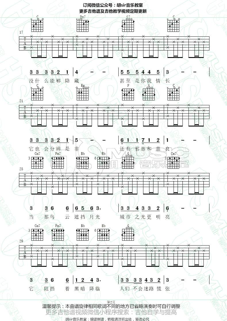 李健《城市之光》吉他谱-C调弹唱谱六线谱...