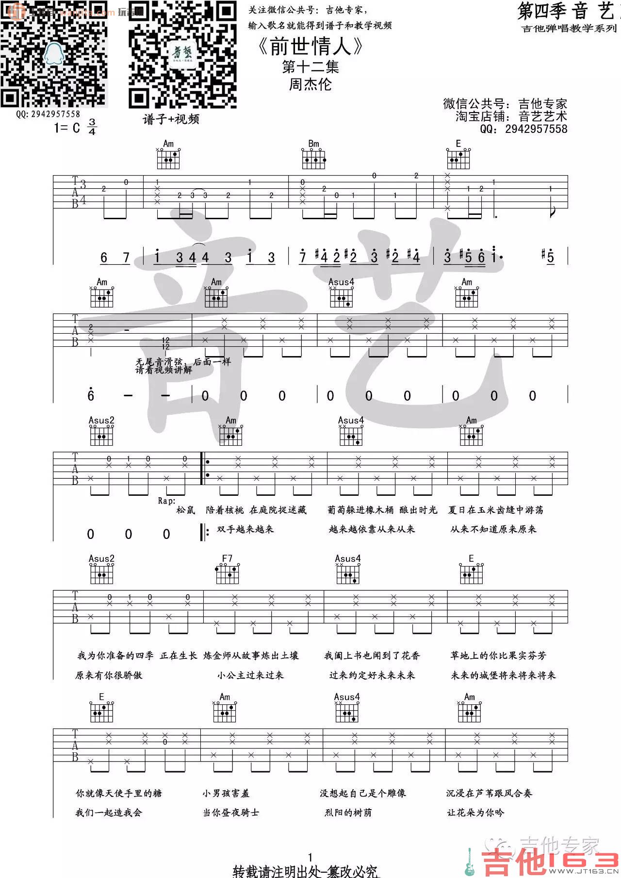 周杰伦《前世情人》吉他谱-C调弹唱谱六线谱...
