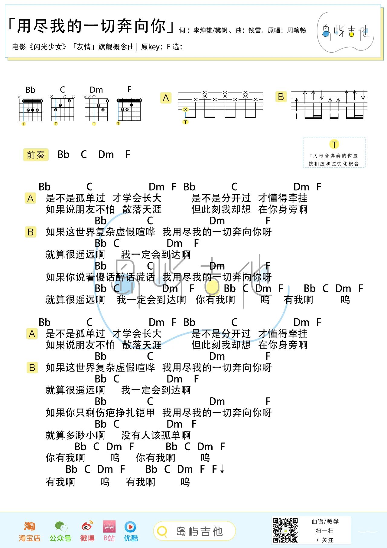 吉他周笔畅《用尽我的一切奔向你》吉他谱-F调弹唱谱