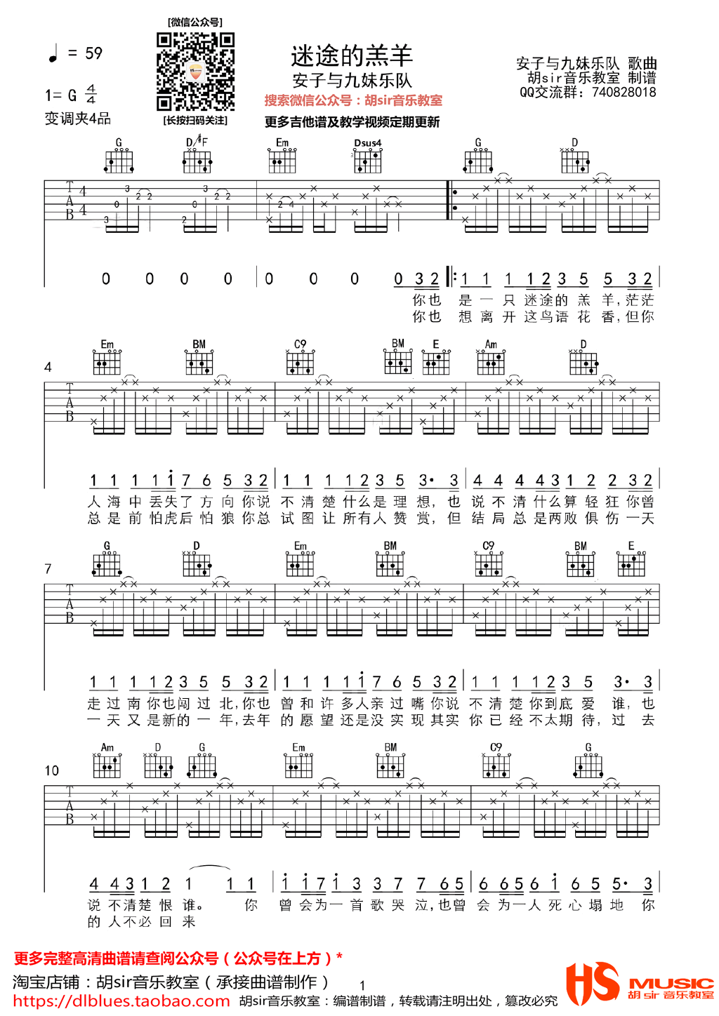吉他《迷途的羔羊》吉他谱_安子与九妹_G调弹唱谱六线谱