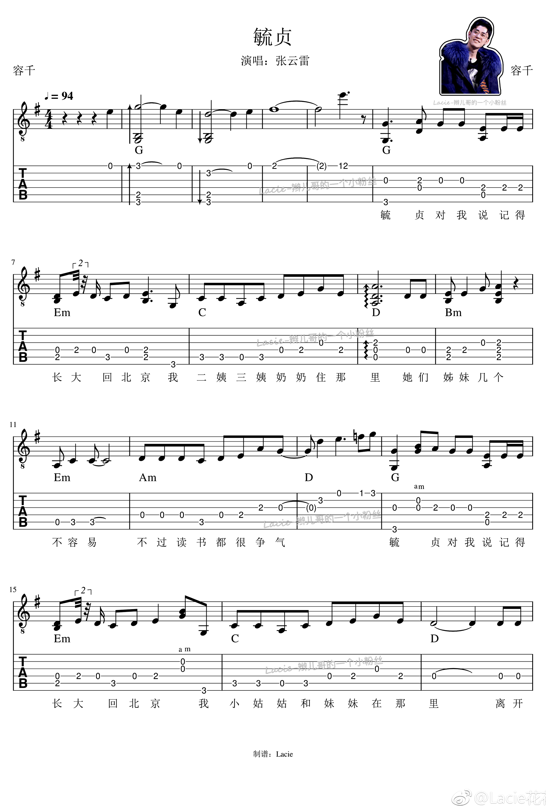 吉他毓贞吉他谱_张云雷_《毓贞》G调弹唱谱六线谱
