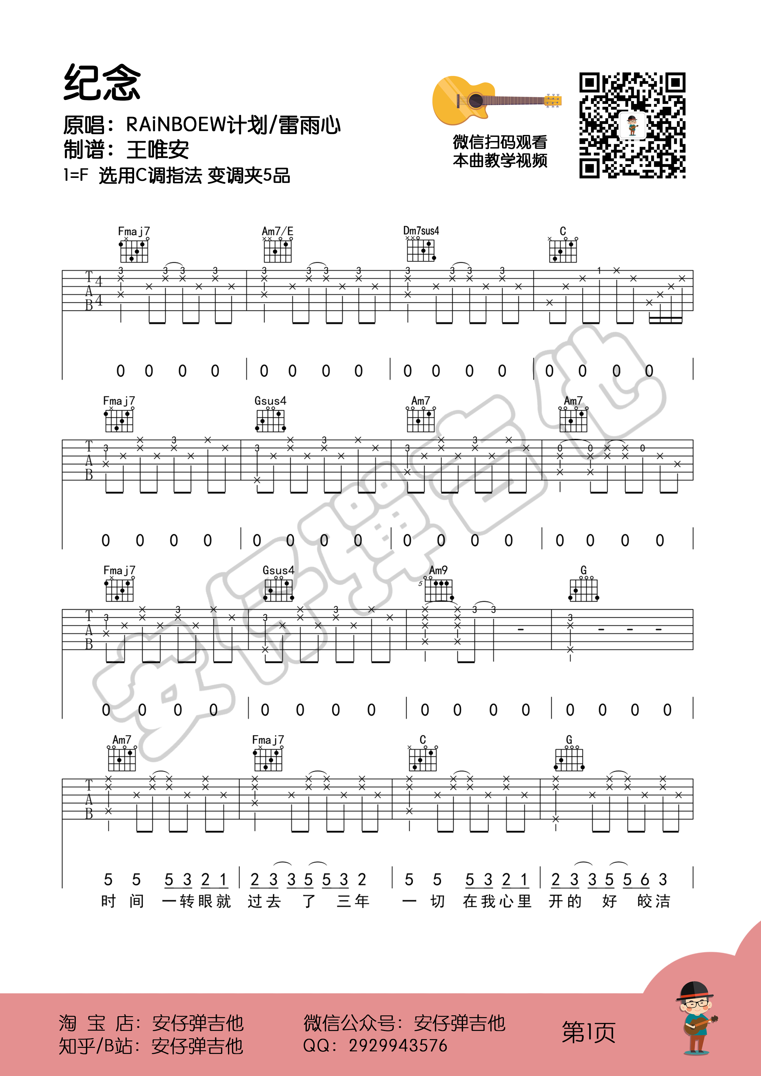 吉他雷雨心-《纪念》吉他谱-C调弹唱谱六线谱