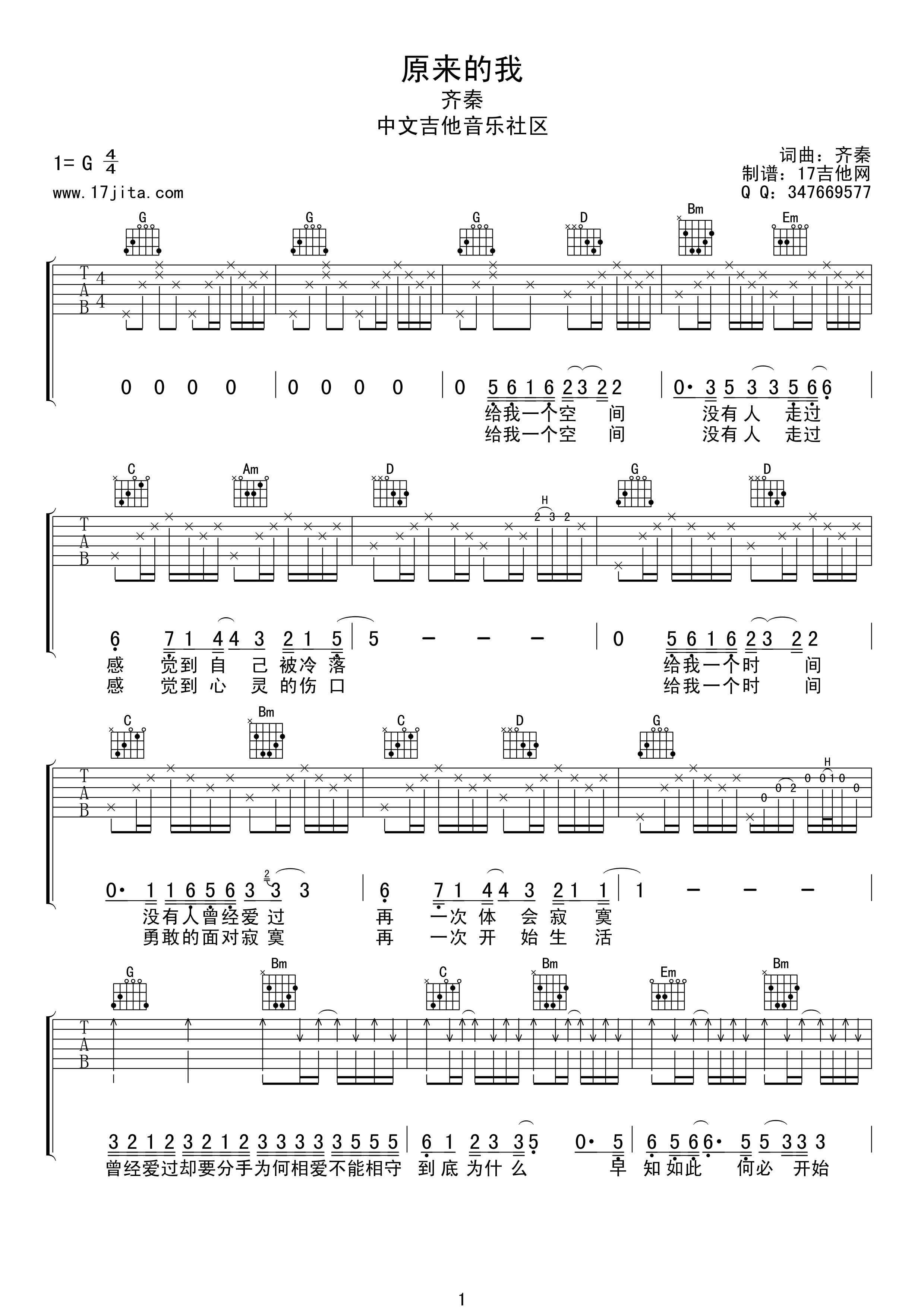 《原来的我》吉他谱_齐秦_G调弹唱谱六线谱...