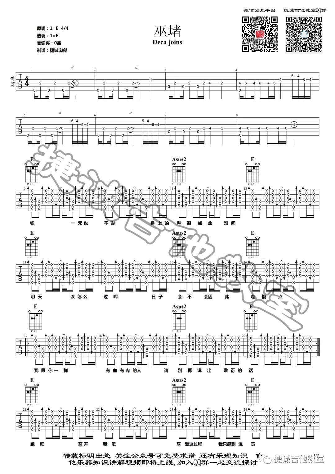 巫堵吉他谱_DecaJoins_《巫堵》E调原版弹唱谱六线谱...