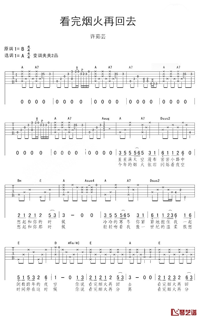 看完烟火再回去吉他谱-许茹芸-A调弹唱谱六线谱...