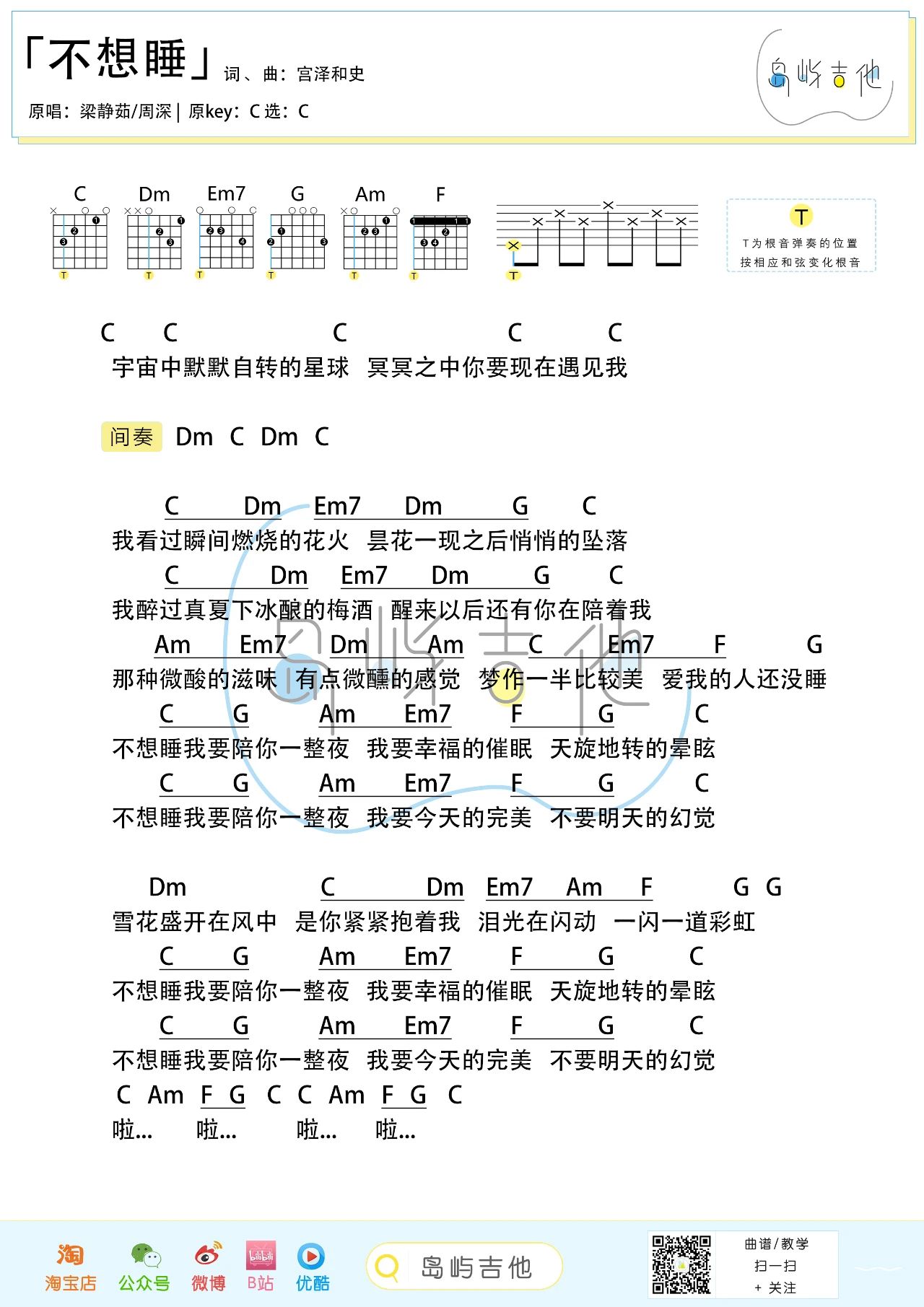 吉他周深/梁静茹-不想睡吉他谱-C调吉他弹唱谱