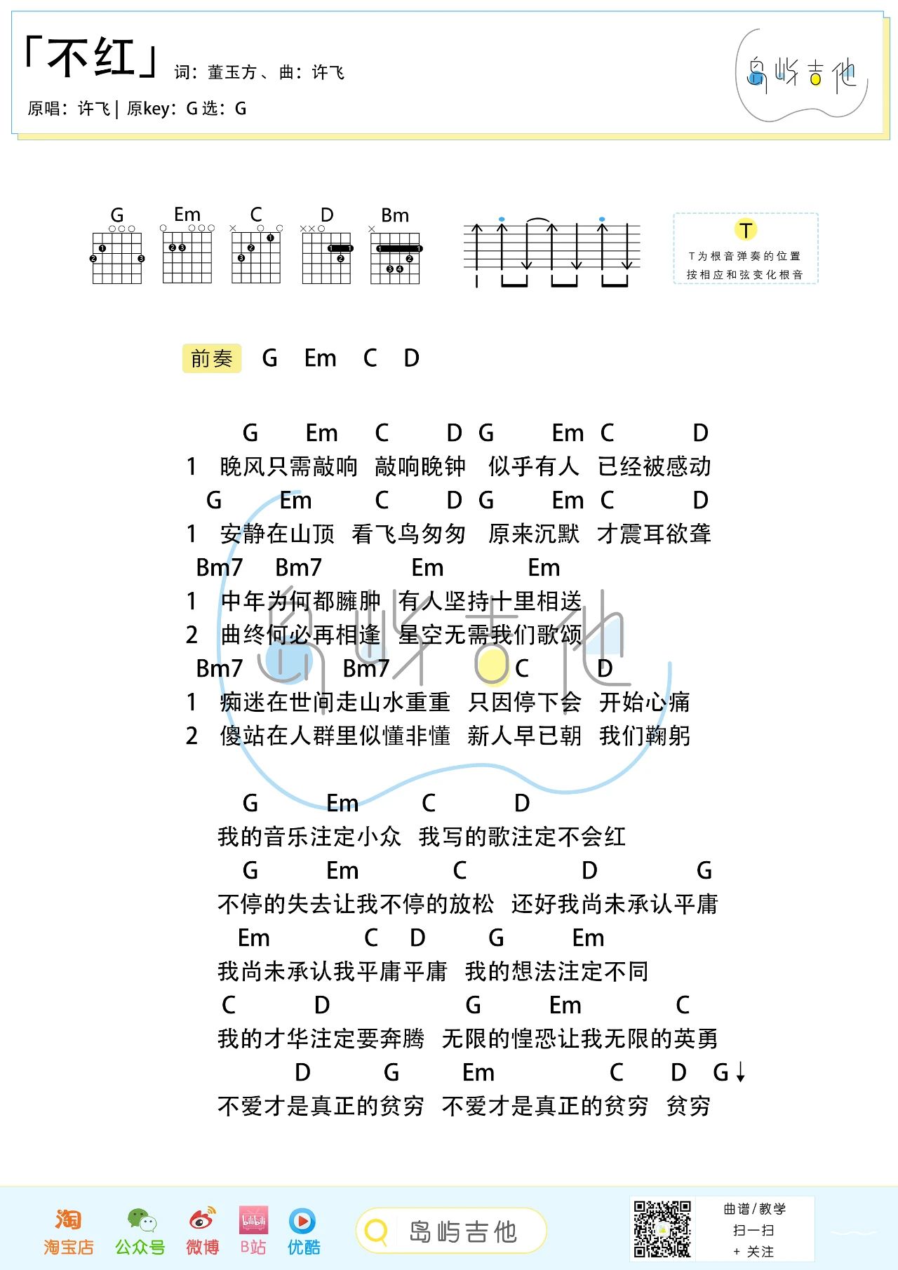 吉他许飞-不红吉他谱-G调吉他弹唱谱