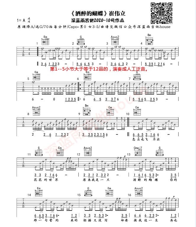 崔伟立-醉酒德蝴蝶吉他谱-G调六线谱弹唱谱...