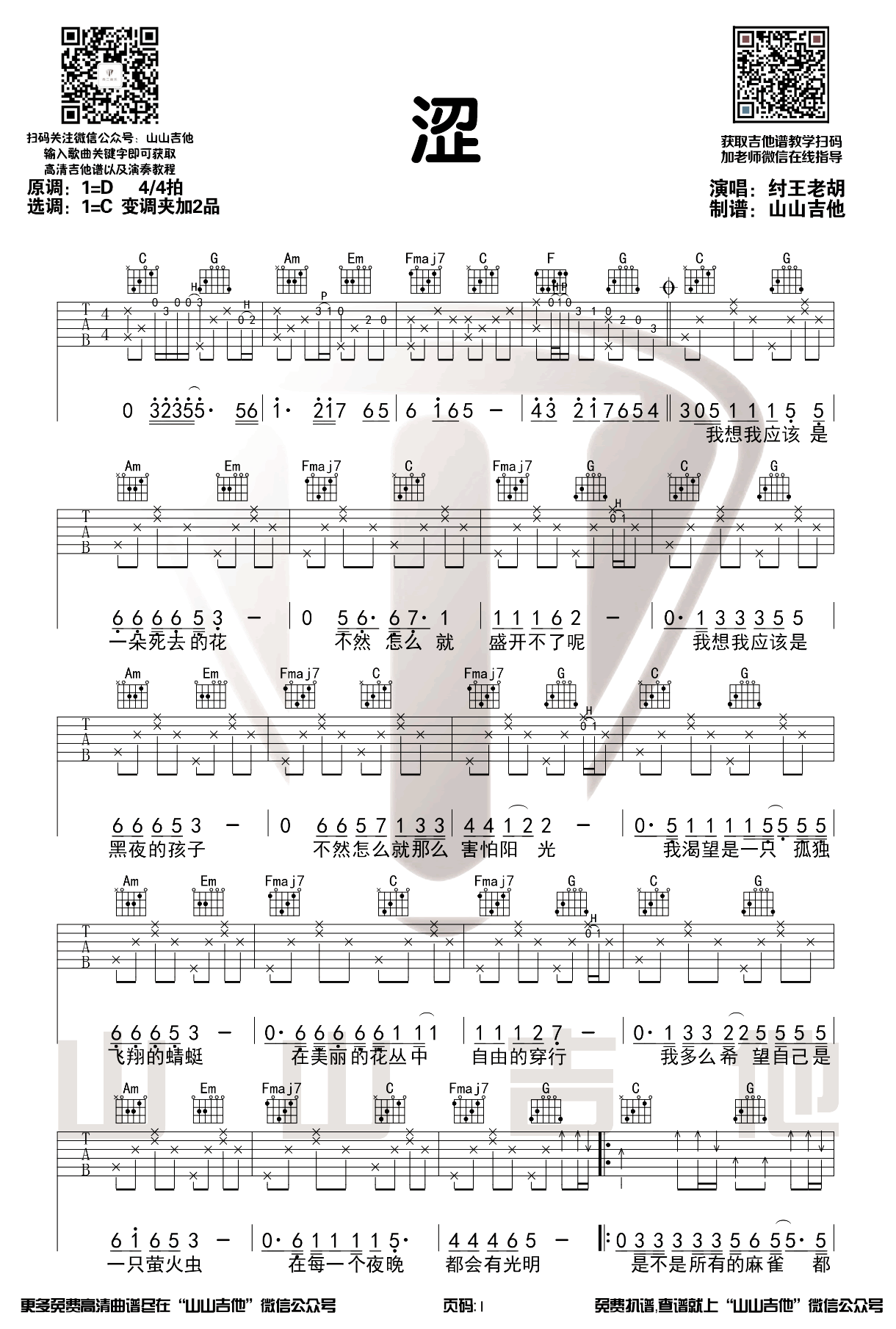 涩吉他谱_纣王老胡_《涩》C调原版六线谱弹唱谱...