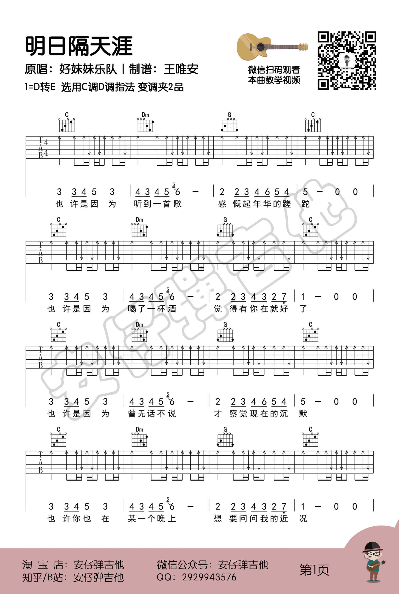 《明日隔天涯》吉他谱_好妹妹乐队_C调六线谱弹唱谱...
