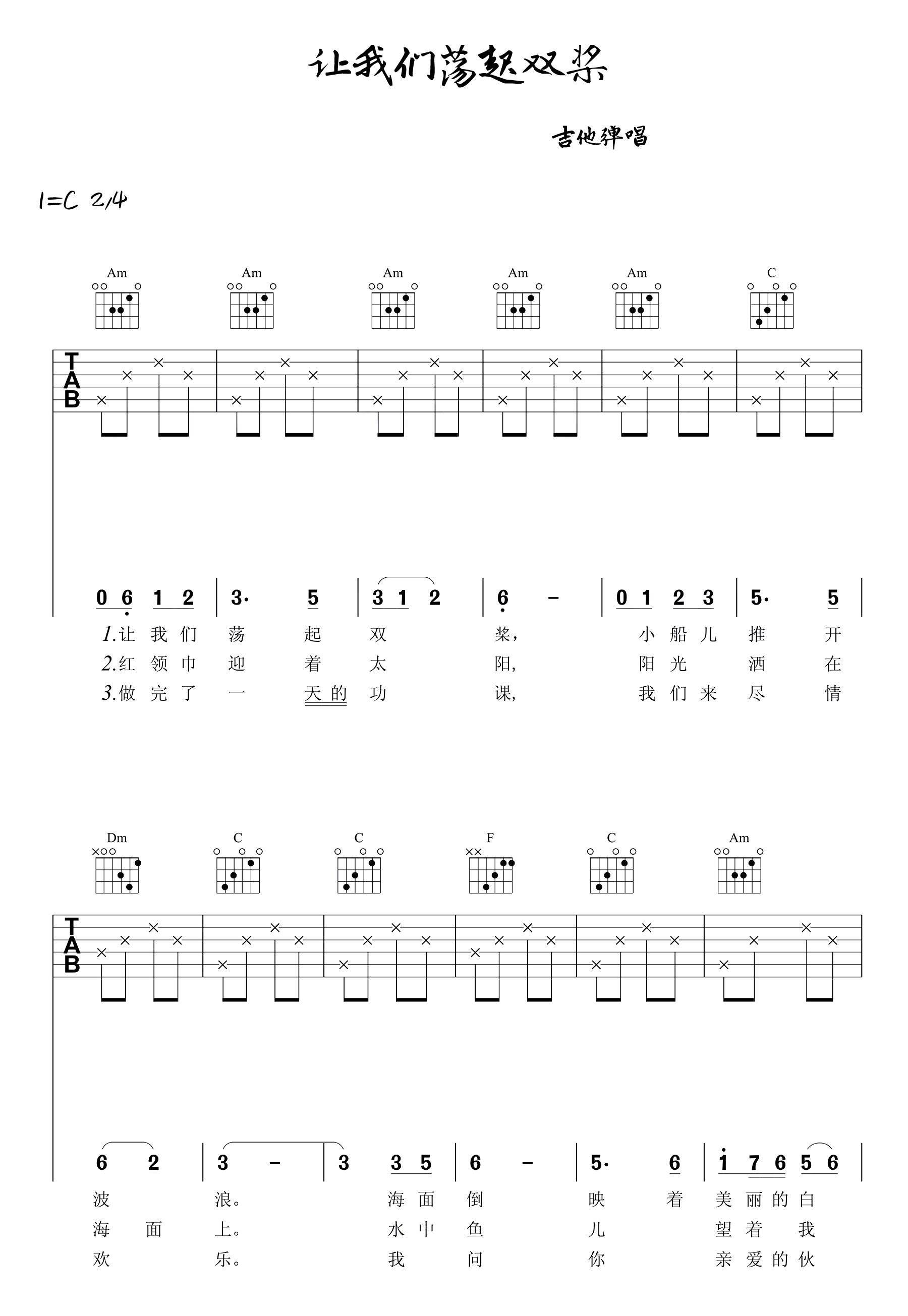 《让我们荡起双桨》吉他谱_儿歌_C调弹唱谱六线谱...