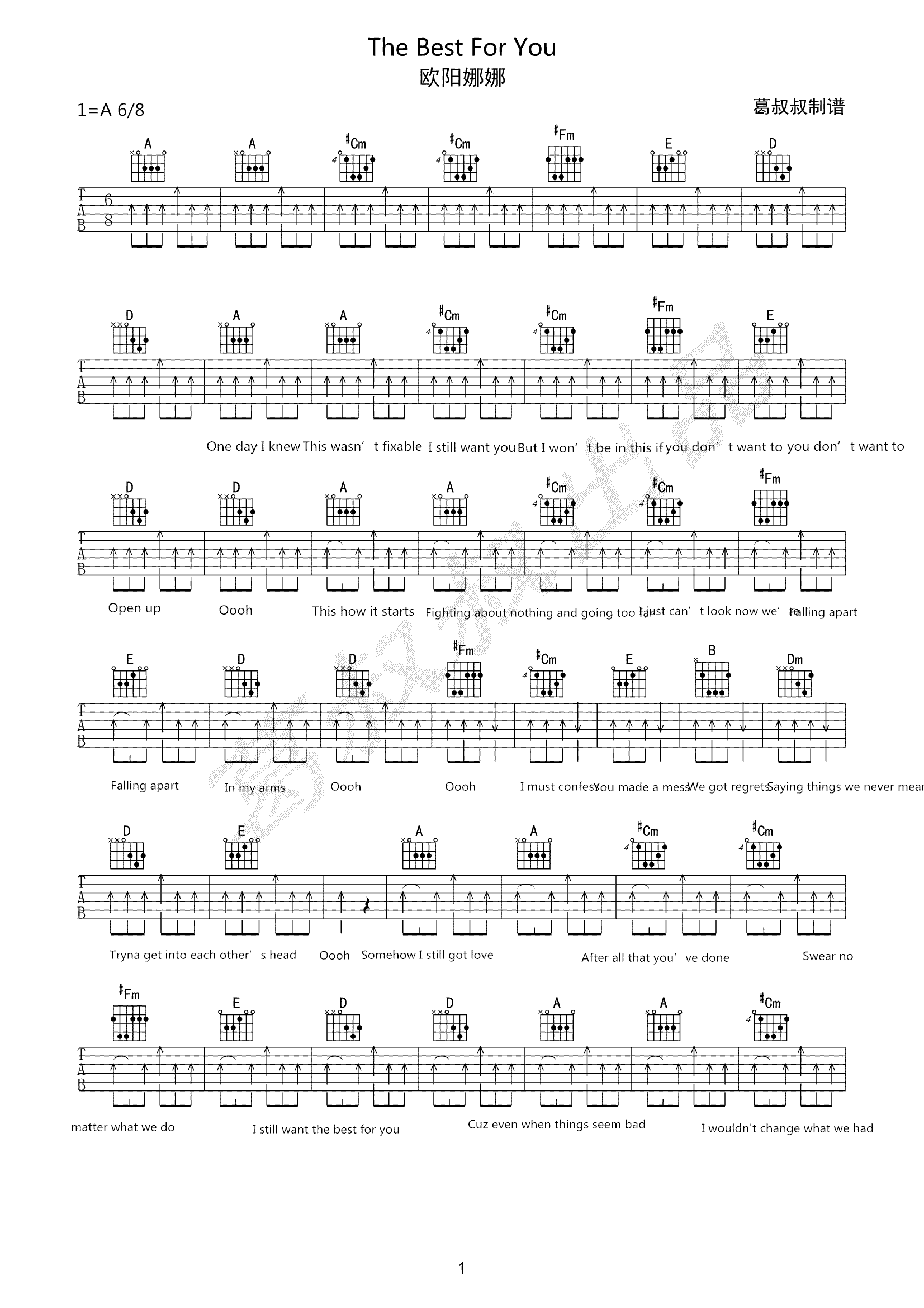 《TheBestForYou》吉他谱_欧阳娜娜_A调弹唱谱六线谱...