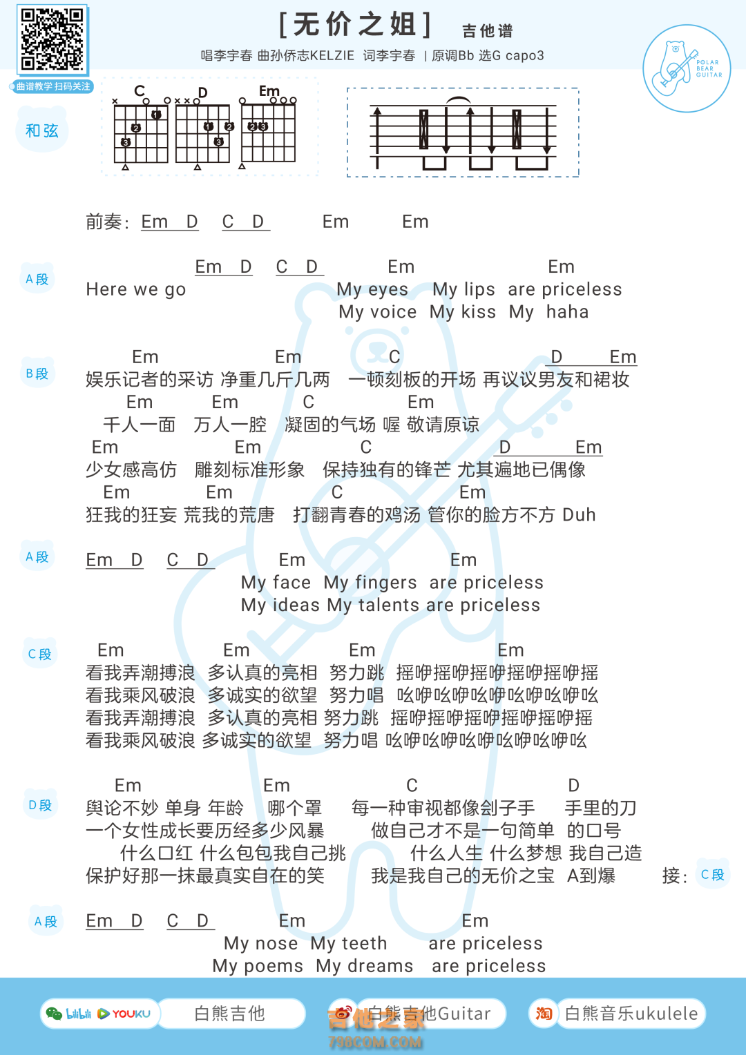 吉他李宇春《无价之姐》吉他谱-无价之姐-G调弹唱谱