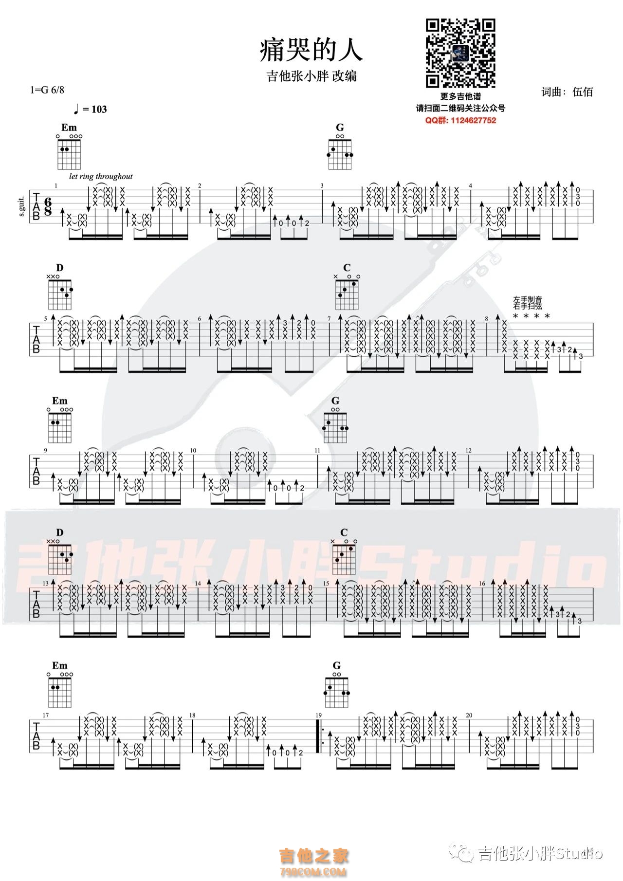 吉他伍佰《痛哭的人》吉他谱-痛哭的人-G调弹唱谱六线谱