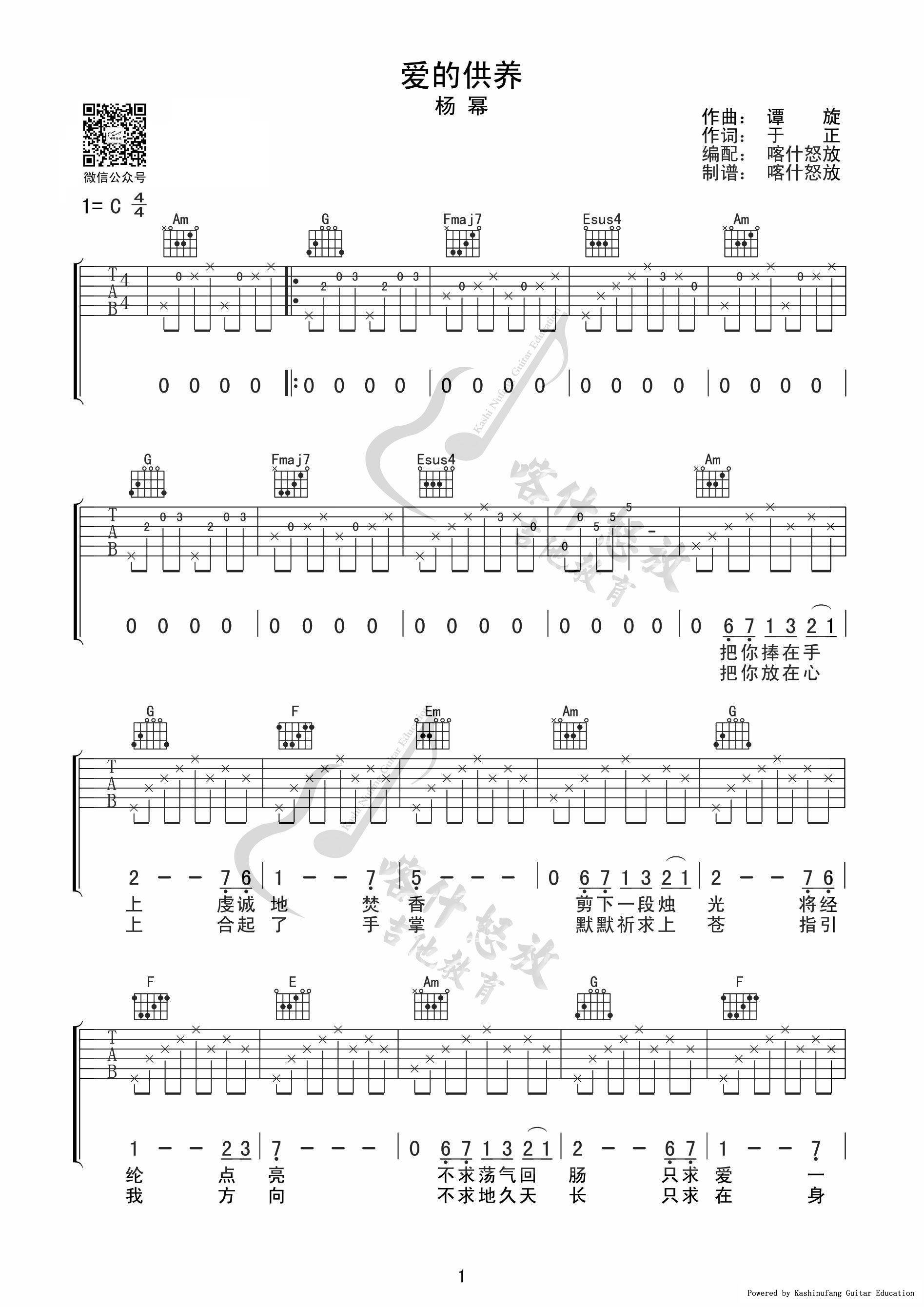 《爱的供养》吉他谱_杨幂_C调弹唱谱六线谱...