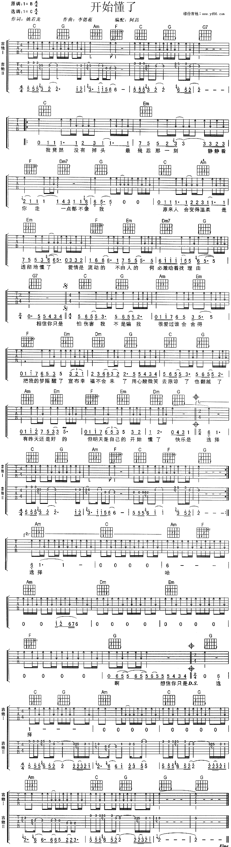 吉他开始懂了吉他谱-孙燕姿-C调弹唱谱六线谱