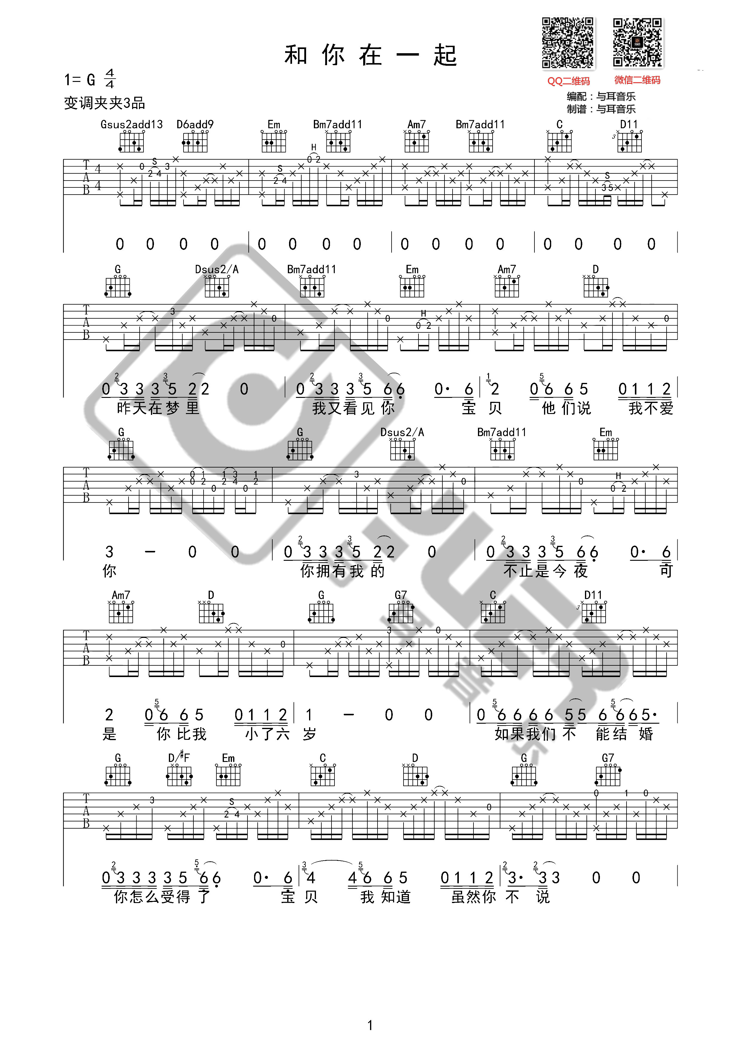 和你在一起吉他谱-群星-G调弹唱谱六线谱...