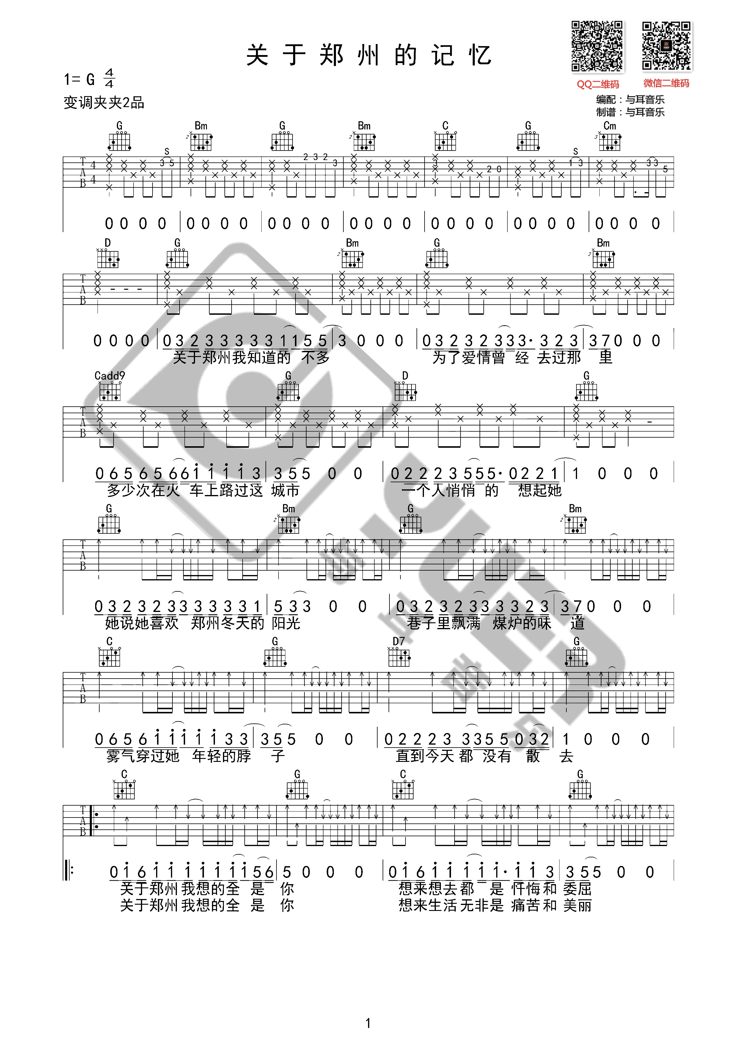 关于郑州的回忆-与耳音乐-G调六线谱弹唱谱...