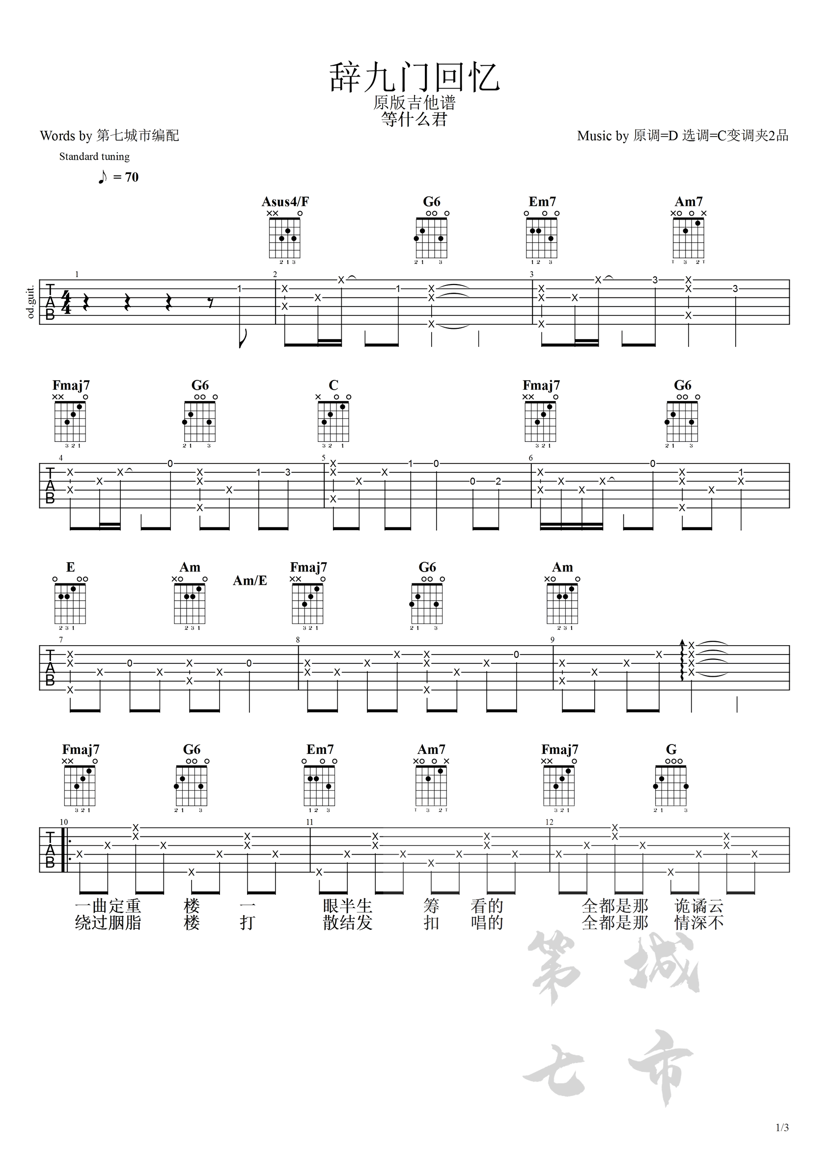 《辞九门回忆》吉他谱_等什么君_C调弹唱六线谱...