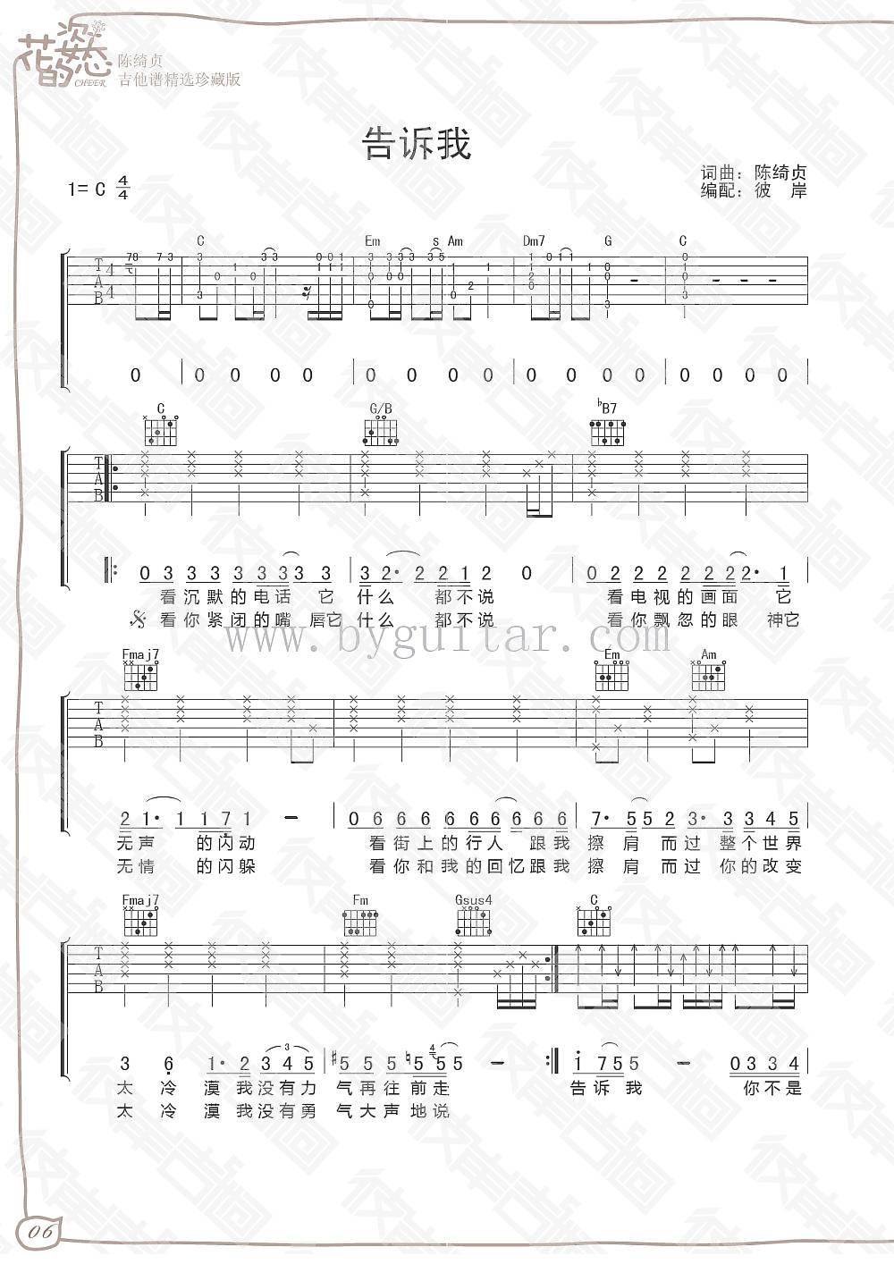 陈绮贞告诉我吉他谱,《告诉我》C调吉他弹唱谱...