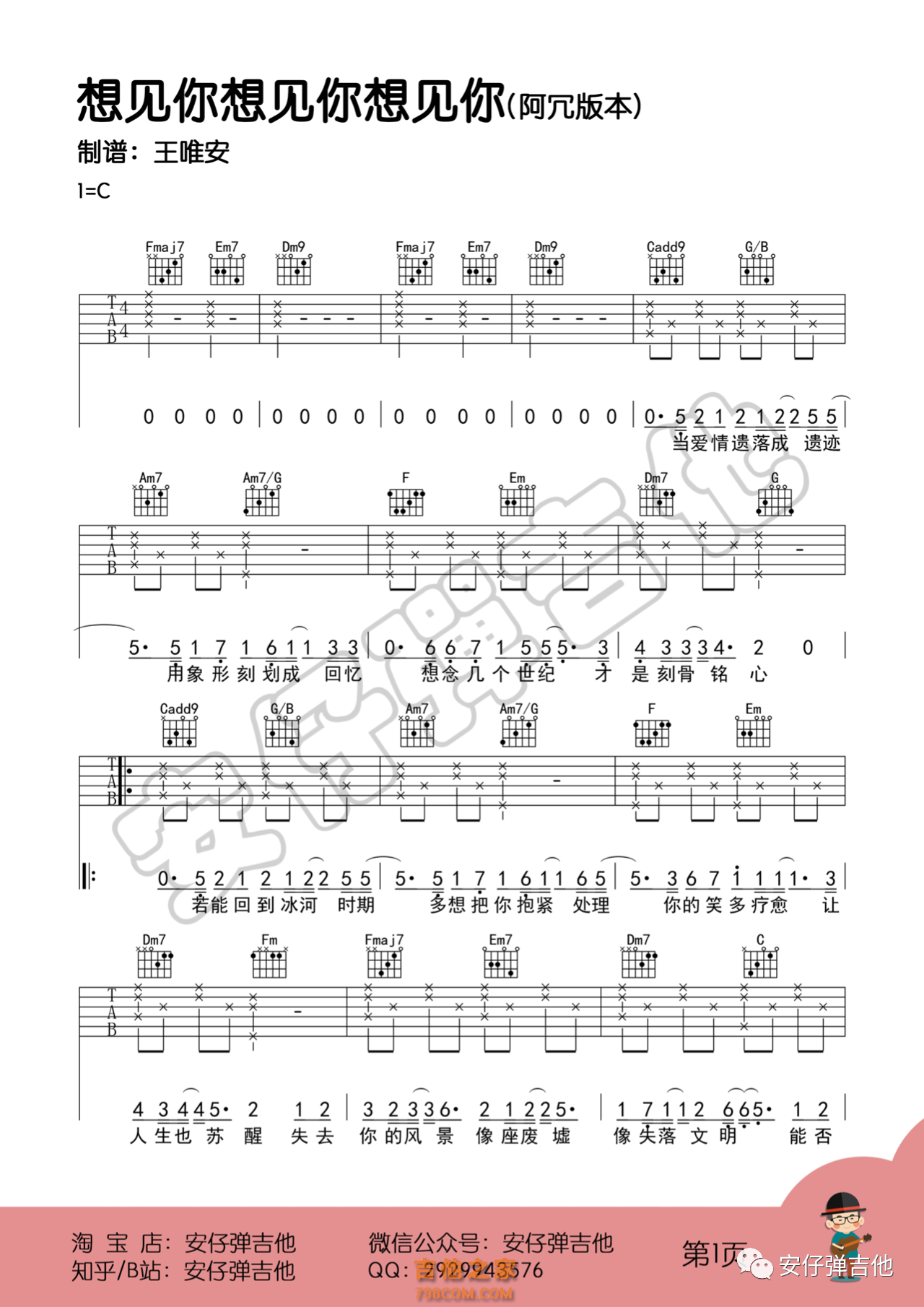 阿冗《想见你想见你想见你》吉他谱,想见你想见你想见你C调吉他谱...