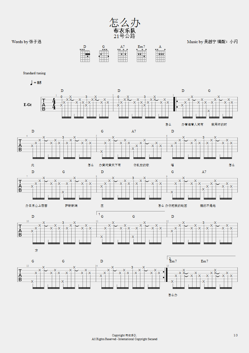 怎么办吉他谱_布衣乐队_D调六线弹唱谱...