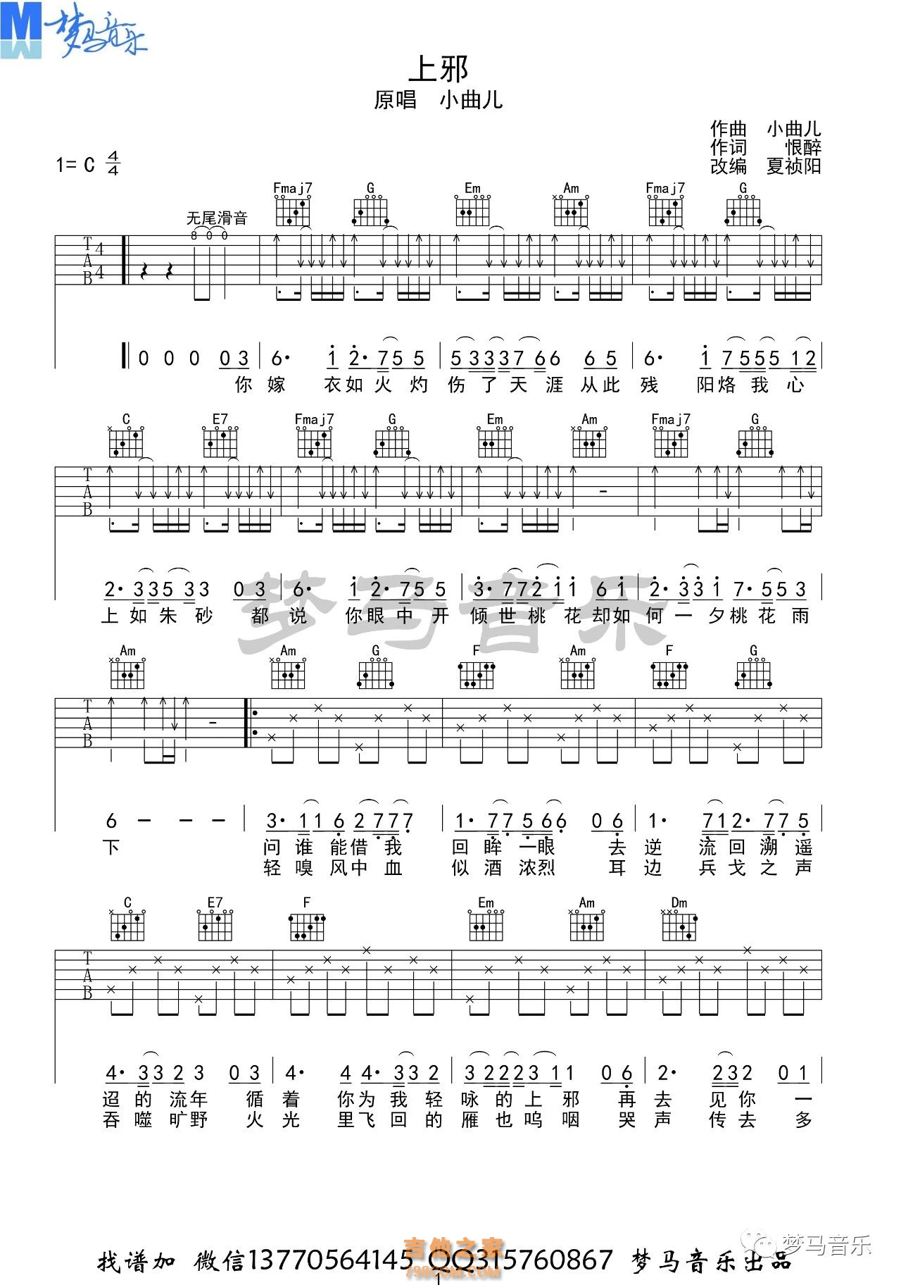 小曲儿《上邪》吉他谱,上邪吉他谱C调...
