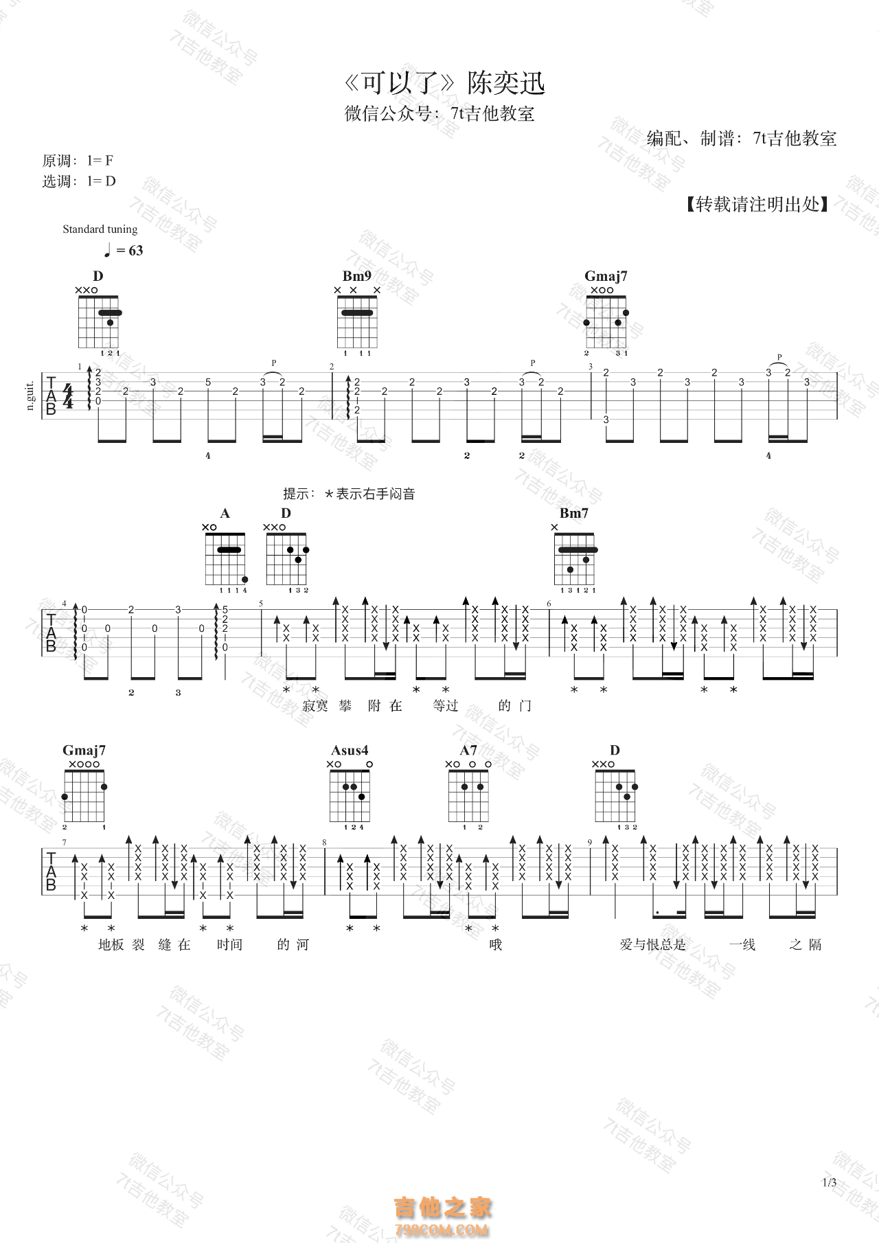 陈奕迅《可以了》吉他谱,可以了D调吉他谱...