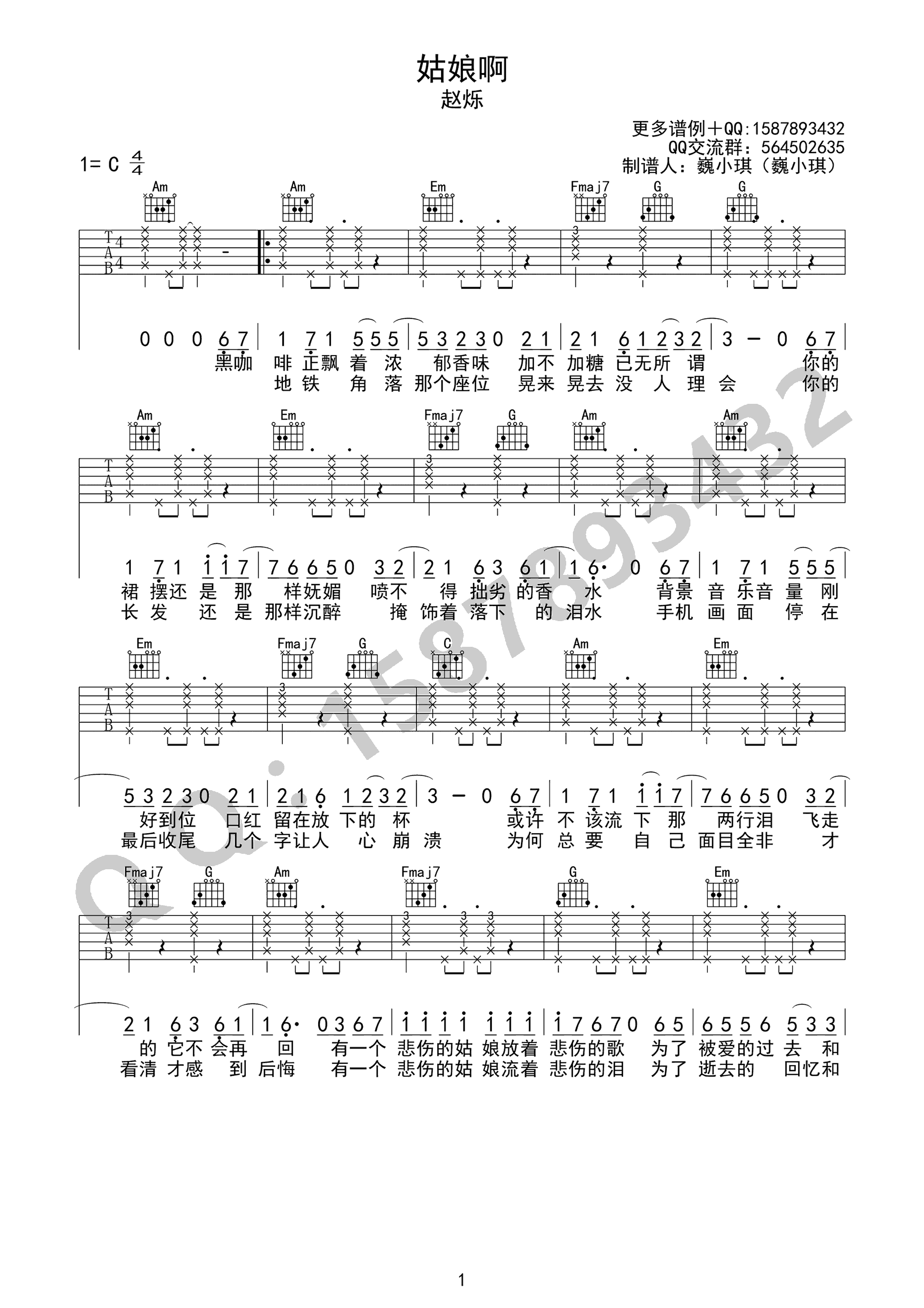 姑娘啊吉他谱_赵烁_《姑娘啊》C调原版弹唱六线谱_高清图片谱分享,《姑娘啊》是由赵烁演唱的一首民谣歌曲...