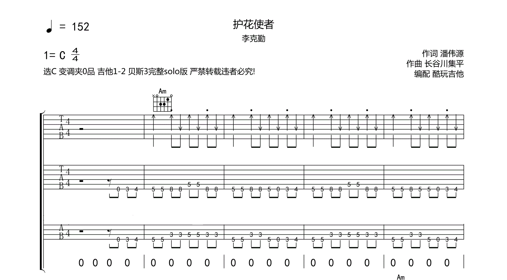 吉他护花使者吉他谱原版-李克勤-附solo和贝斯-六线谱弹唱