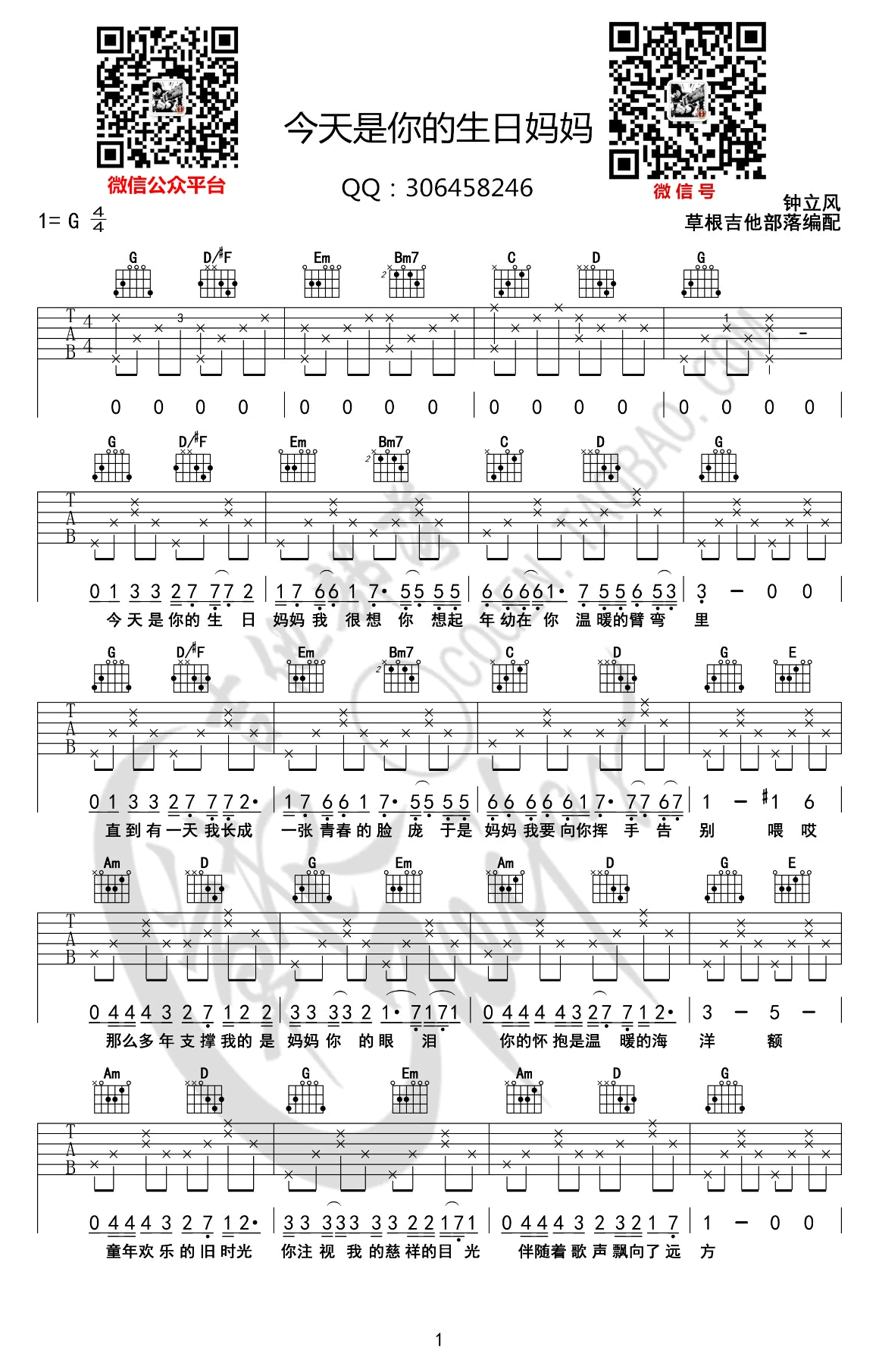 《今天是你的生日妈妈》吉他谱_钟立风_G调弹唱谱_高清六线谱分享,《今天是你的生日妈妈》是由钟立风创作并演唱的一首民谣歌曲...
