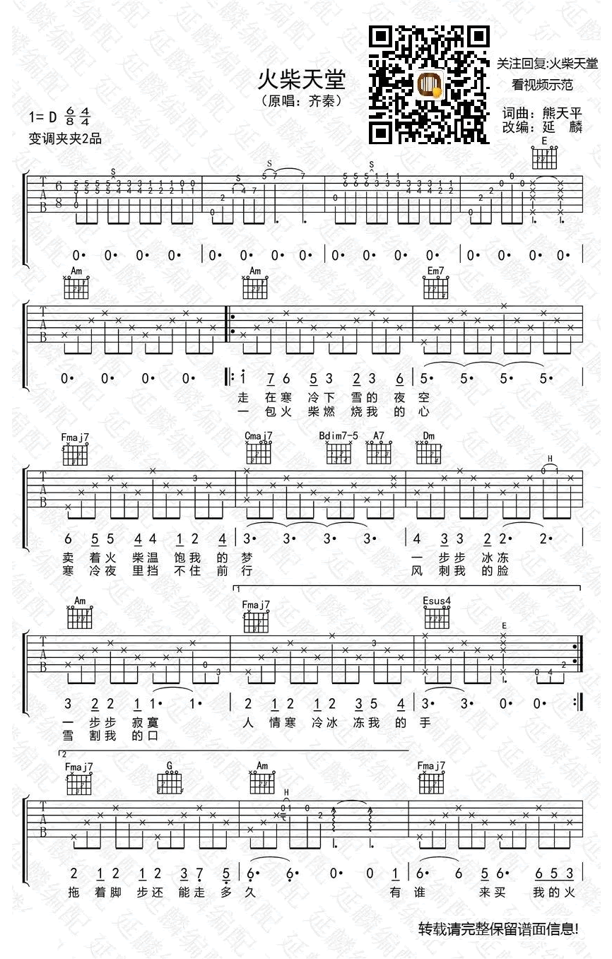 火柴天堂吉他谱_齐秦_C调原版六线谱_吉他弹唱教学分享,《火柴天堂》是由齐秦演唱的一首歌...