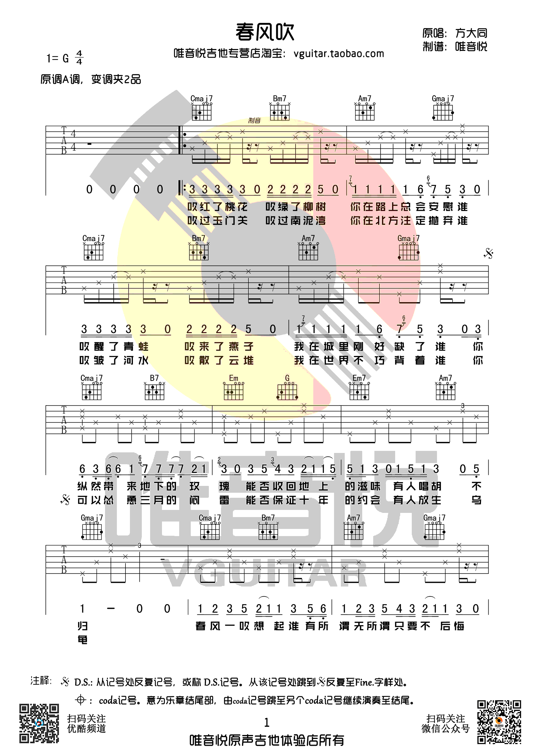 春风吹吉他谱_方大同_《春风吹》G调简单版弹唱谱_高清六线谱分享,《春风吹》是由方大同作曲并演唱的一首歌曲。...