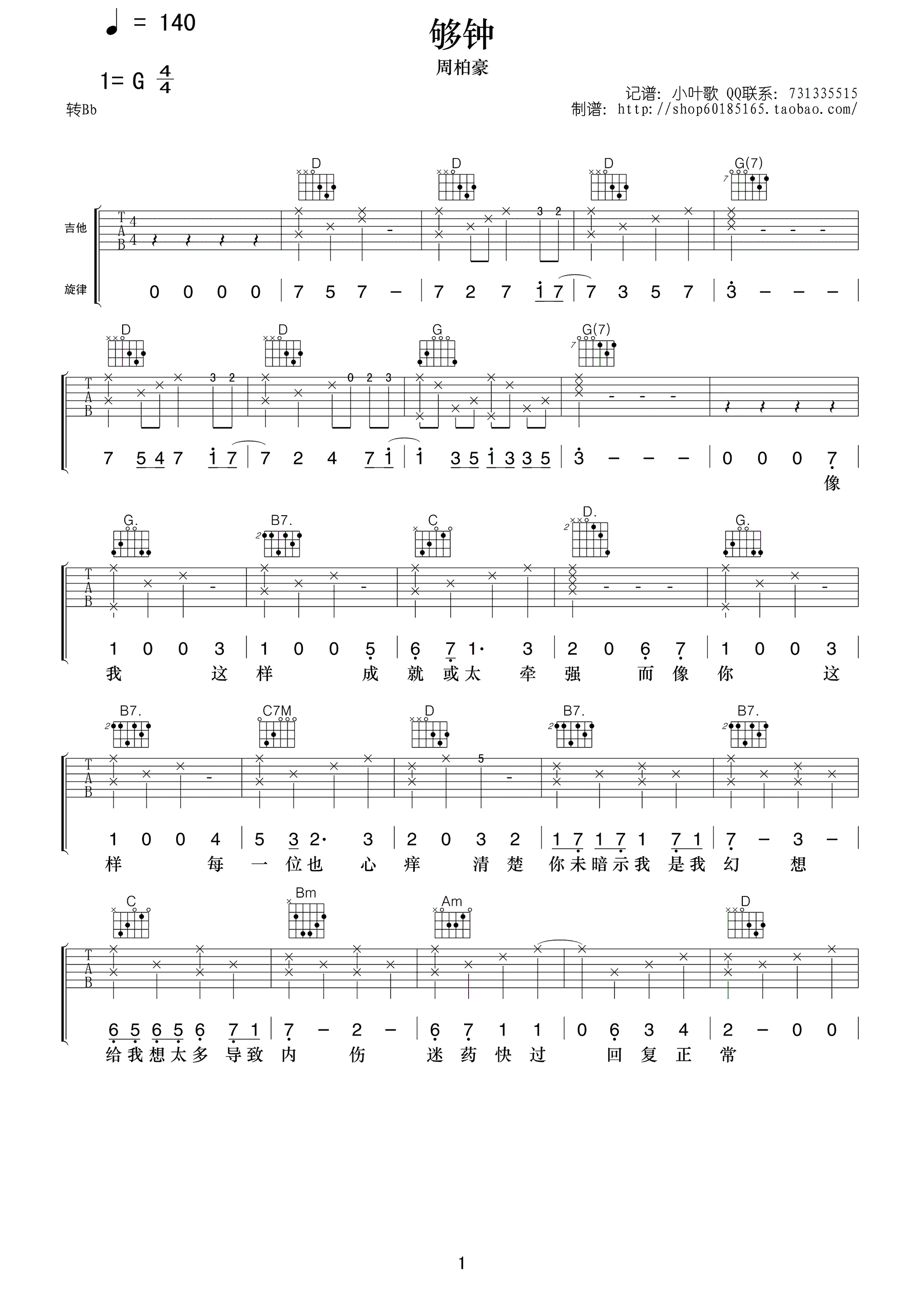 够钟吉他谱_周柏豪_《够钟》G调原版弹唱六线谱_高清图片谱分享,《够钟》是由周柏豪演唱的一首歌。...