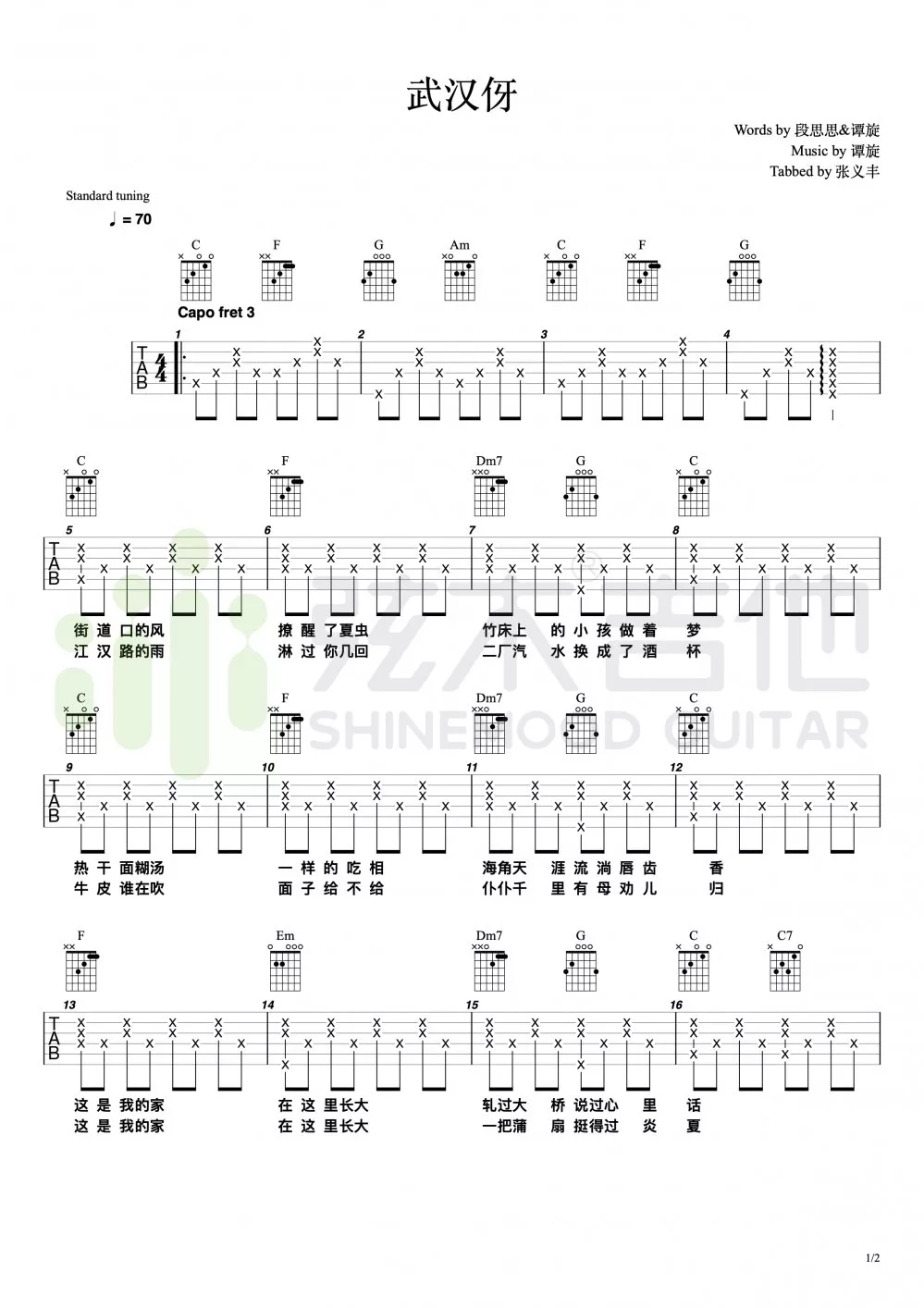 吉他群星《武汉伢》吉他谱-弦木吉他