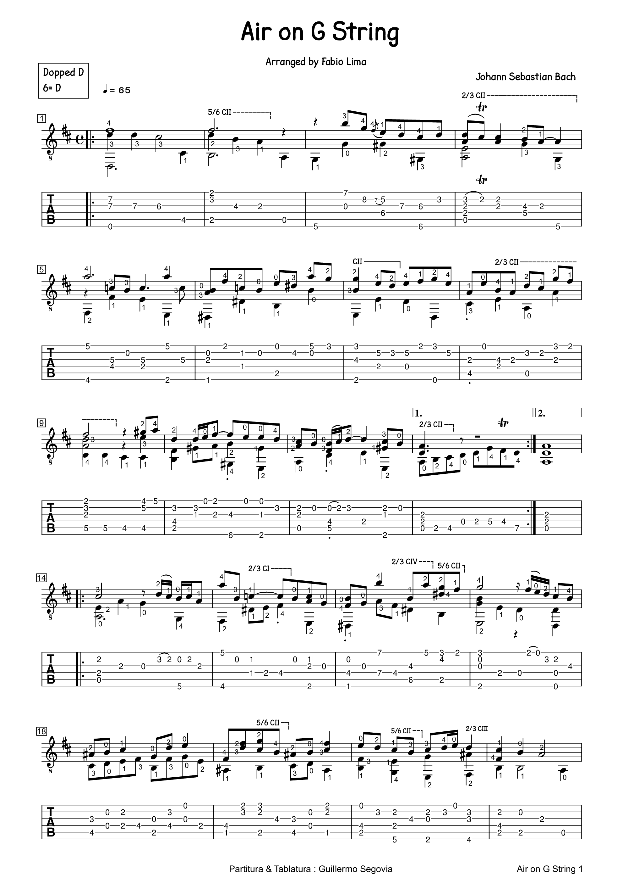 吉他巴赫《G弦上的咏叹调吉他谱Air on the G String