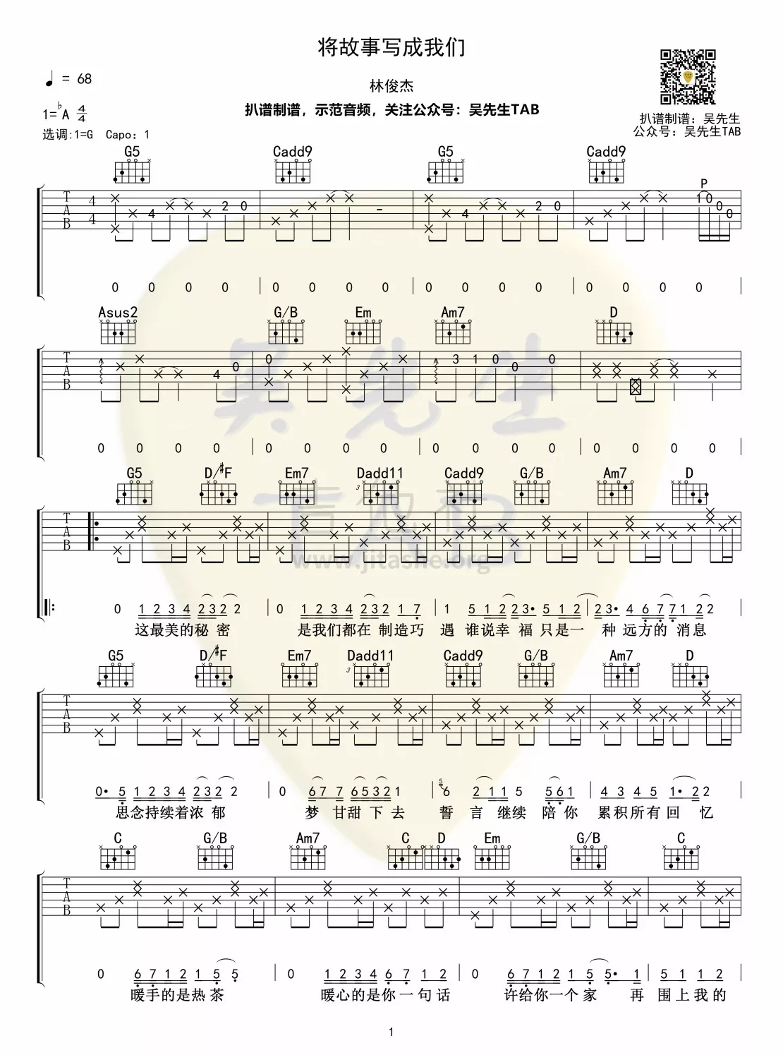 吉他《将故事写成我们》吉他谱-林俊杰